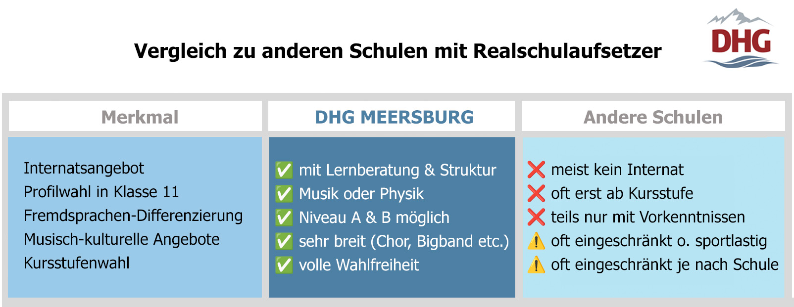 - Das DHG bietet Chor, Bigband, Orchester, Theater und Sport-AGs – ein Spektrum, das über das übliche Maß hinausgeht.