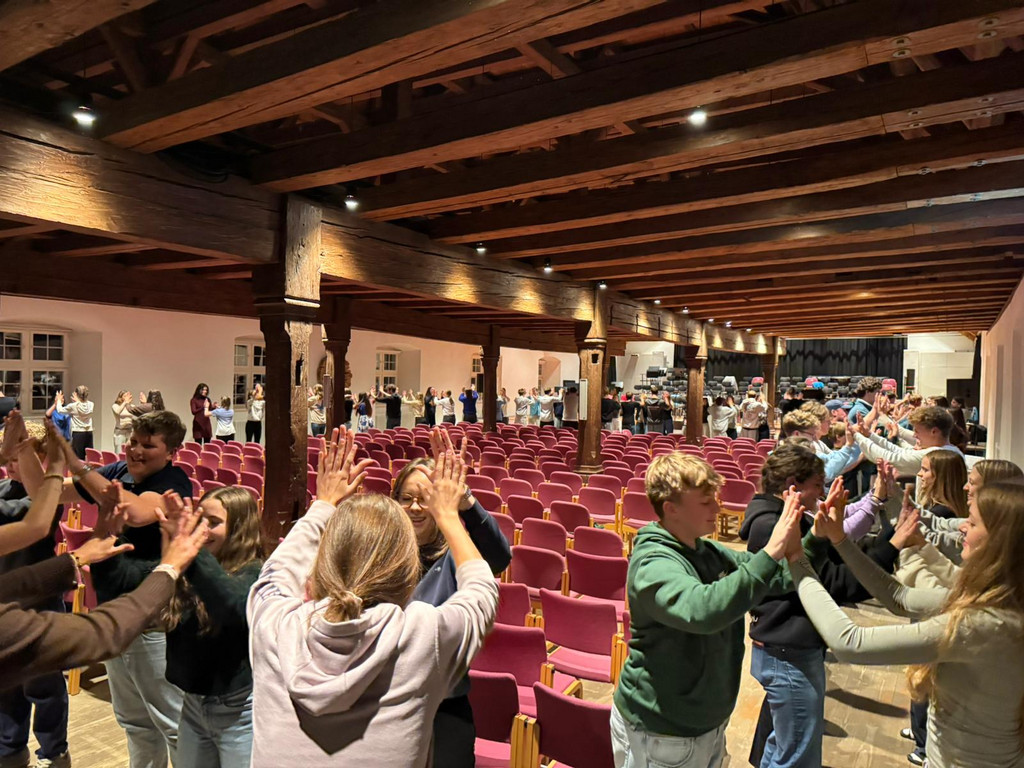 Neben den Proben gab es jedoch auch Zeit für entspannte Momente: Die 130 TeilnehmerInnen genossen gemeinsame Mahlzeiten im barocken Speisesaal, zwei Tanzabende und Spielerunden im Bräuhauskeller - gute Gelegenheiten, um nach intensivem Proben, sich gegenseitig kennenzulernen. Diese gemeinsamen Aktivitäten trugen dazu bei, eine Atmosphäre der Verbundenheit und des Vertrauens zu schaffen.