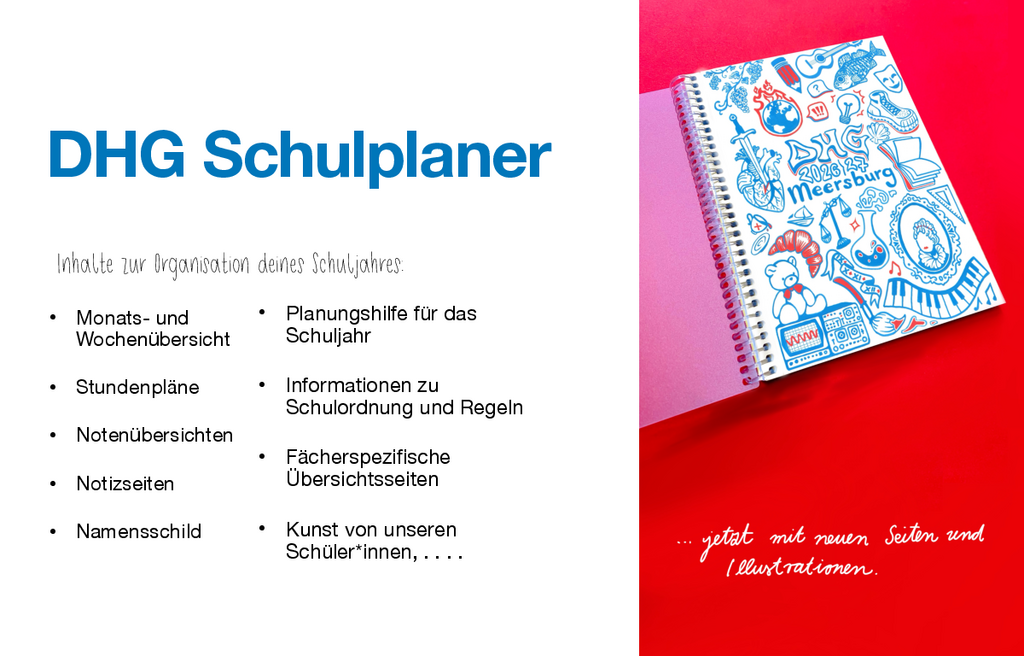 Der neue Schulplaner des Droste-Hülshoff-Gymnasiums für das kommende Schuljahr ist erschienen – frisch gestaltet mit kreativen Illustrationen von Key Granados Ruíz.
