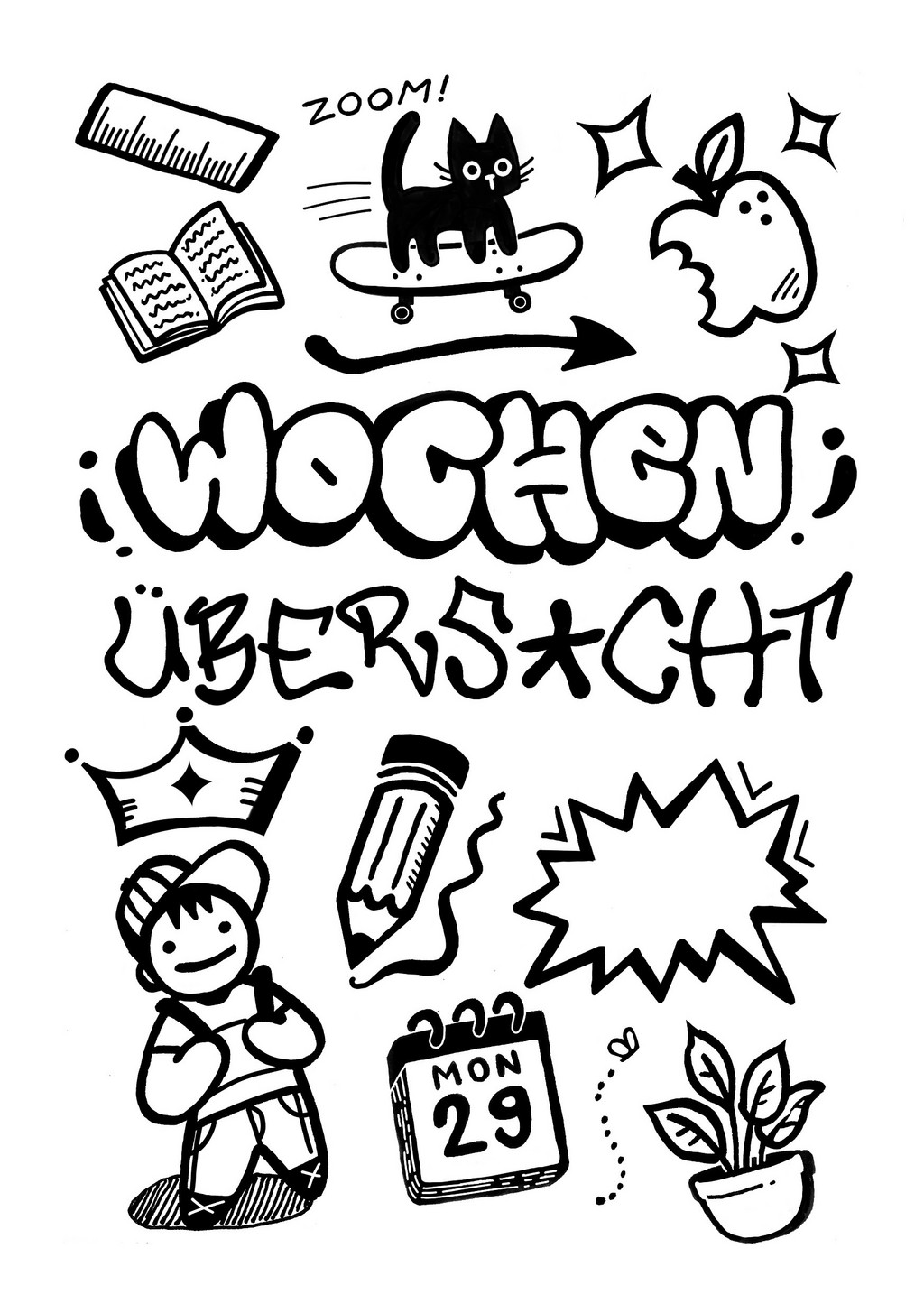 Der Planer bietet übersichtliche Wochenpläne, alle wichtigen Termine, Notenübersichten, Organisationsseiten und Hilfestellungen für den Unterricht.