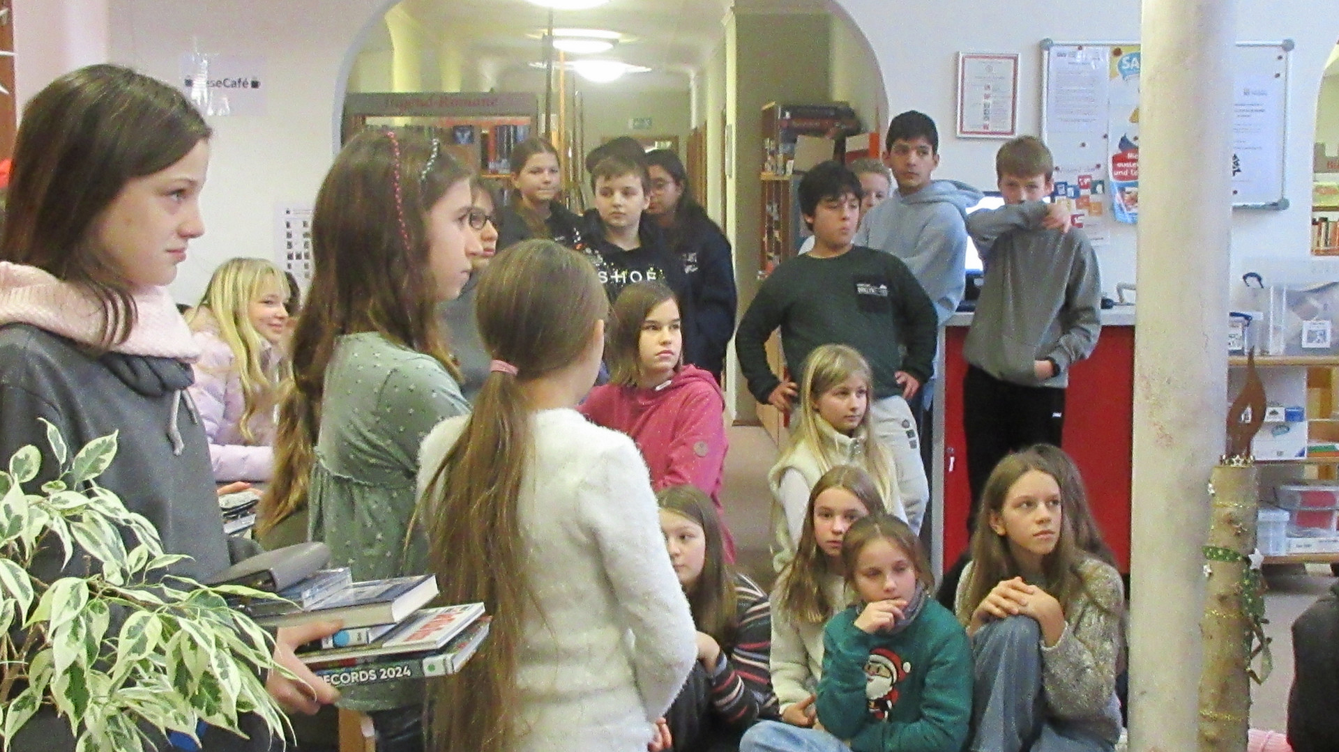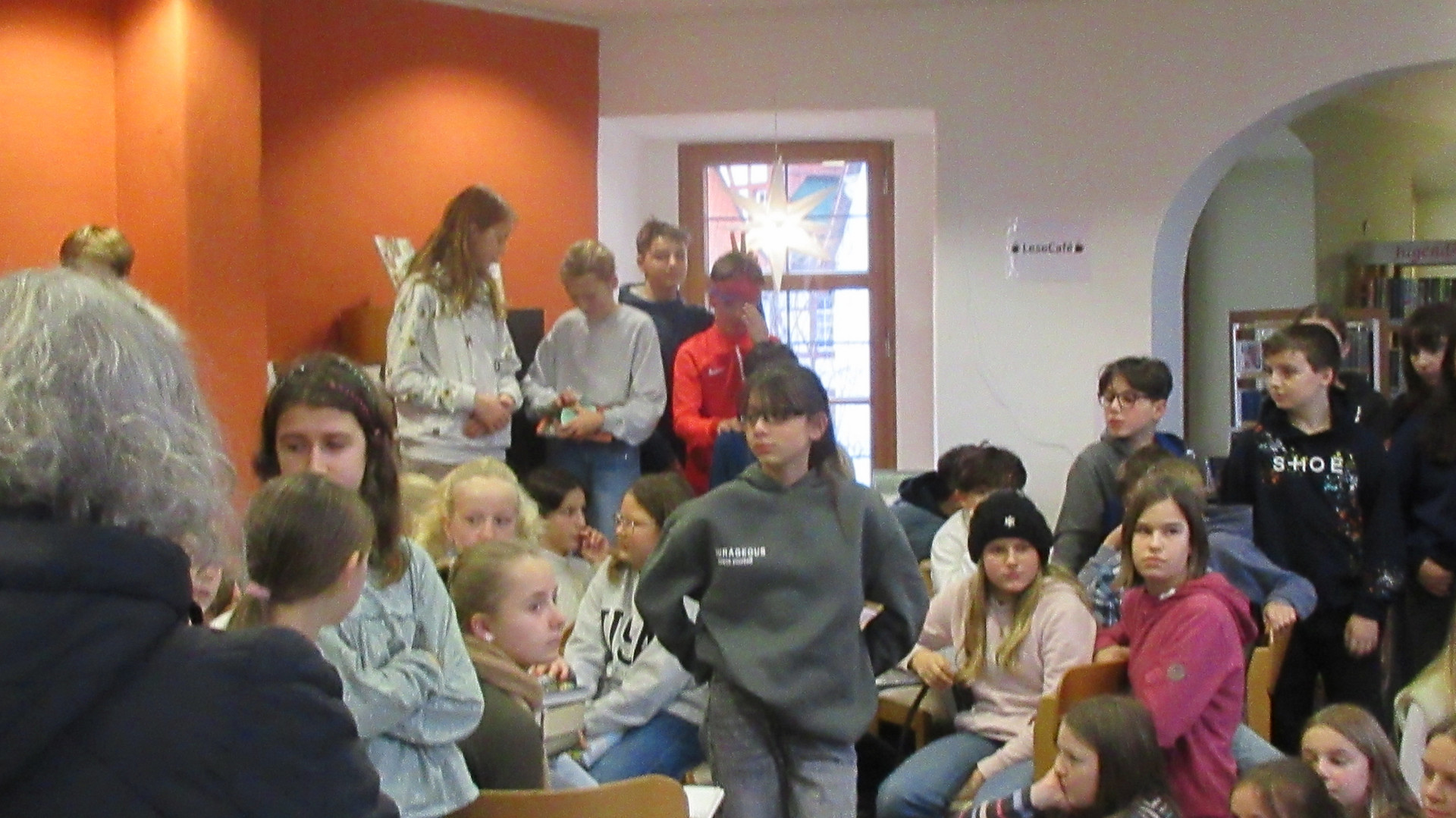 Wie im Jahr zuvor organisierte Frau Fleischmann nicht nur den Saal des Vineums, sondern lud alle Sechstklässler*innen anschließend in die Stadtbibliothek Meersburg ein. Hier wurde ausführlich geschmökert und gespielt – so bekam manches Kind sicher Appetit auf mehr.