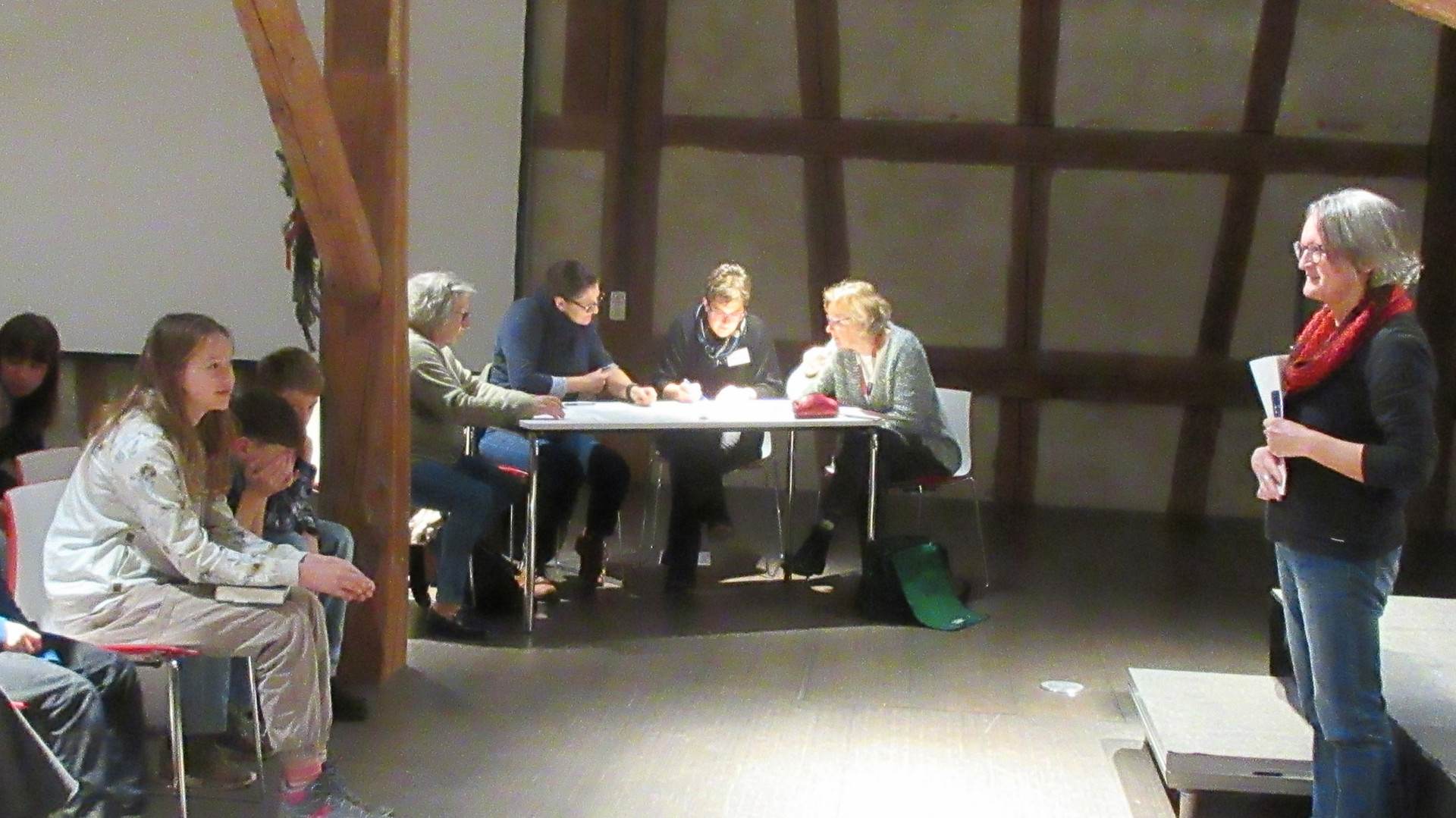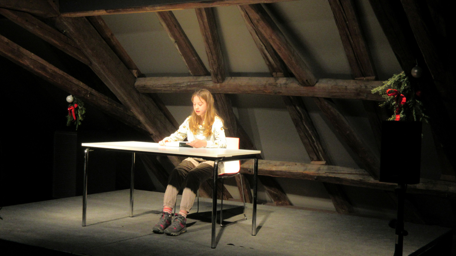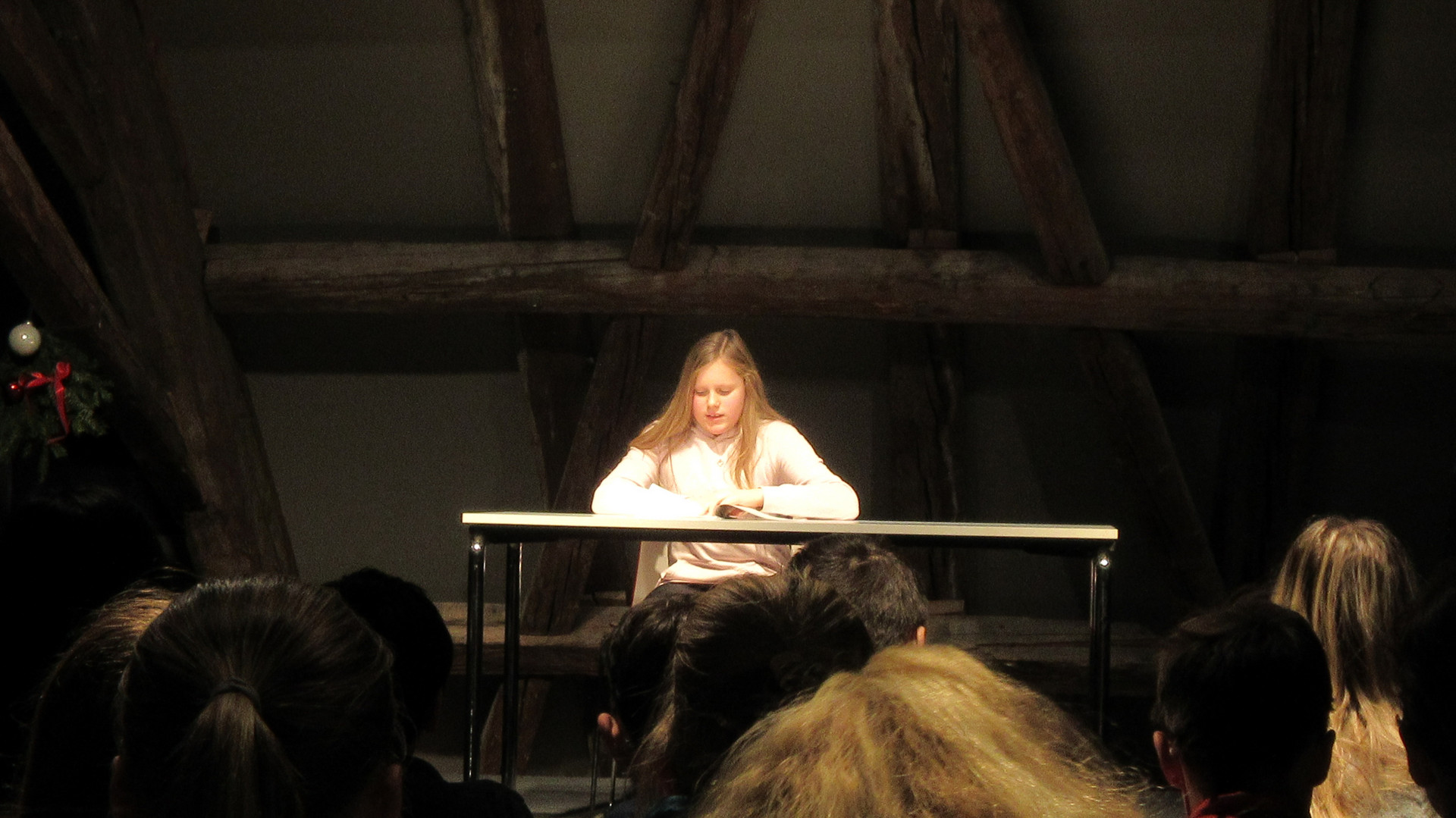 Ob spannende Textpassagen oder lebhafte Dialoge – dem Publikum war einiges geboten, sodass die Zeit verflog. In der Jury saßen Frau Fleischmann von der Stadtbibliothek Meersburg und Frau Meurer-Herrmann, Lesepatin der Bibliothek sowie zwei Lehrerinnen unserer Schule, Frau Walle und Frau Uhl. Leicht fiel die Entscheidung nicht, denn alle trugen lebendig und engagiert die Texte vor; zu guter Letzt wurde Madita Opitz zur Siegerin gekürt. Alle vier Vorleser*innen erhielten als Anerkennung Buchpreise vom Förderverein des DHG.