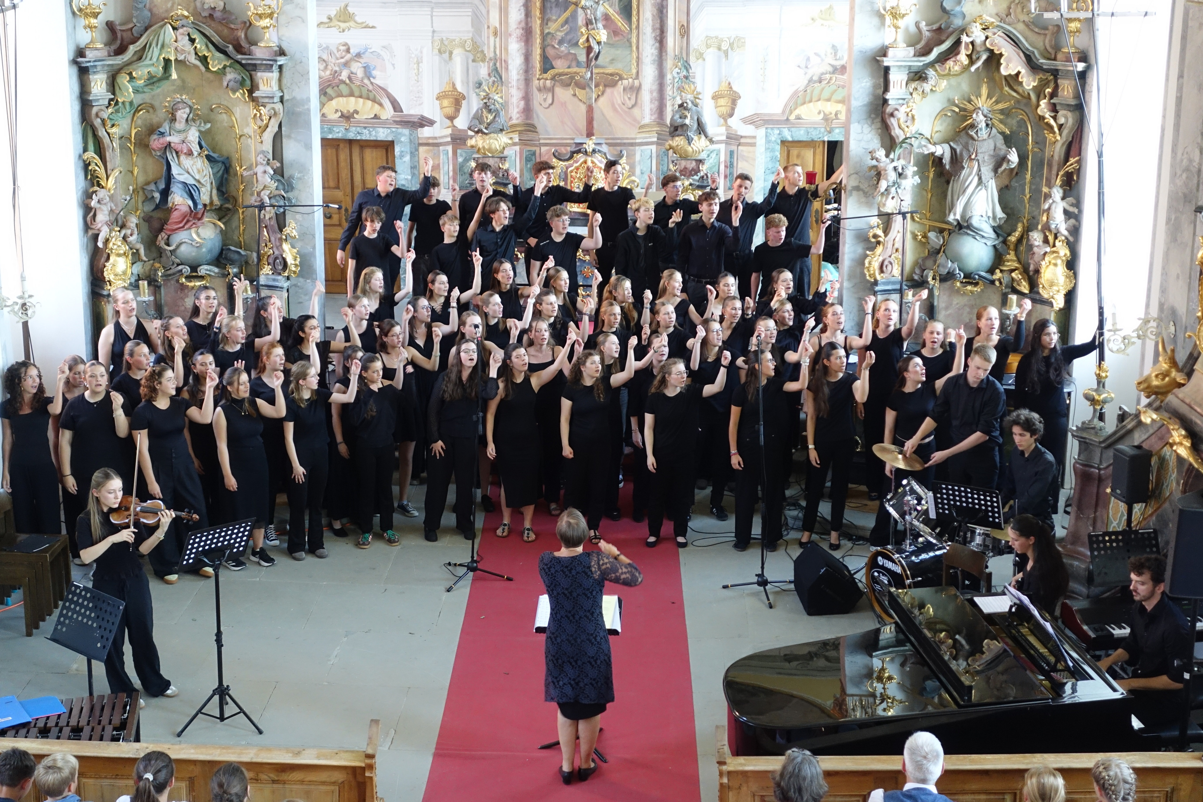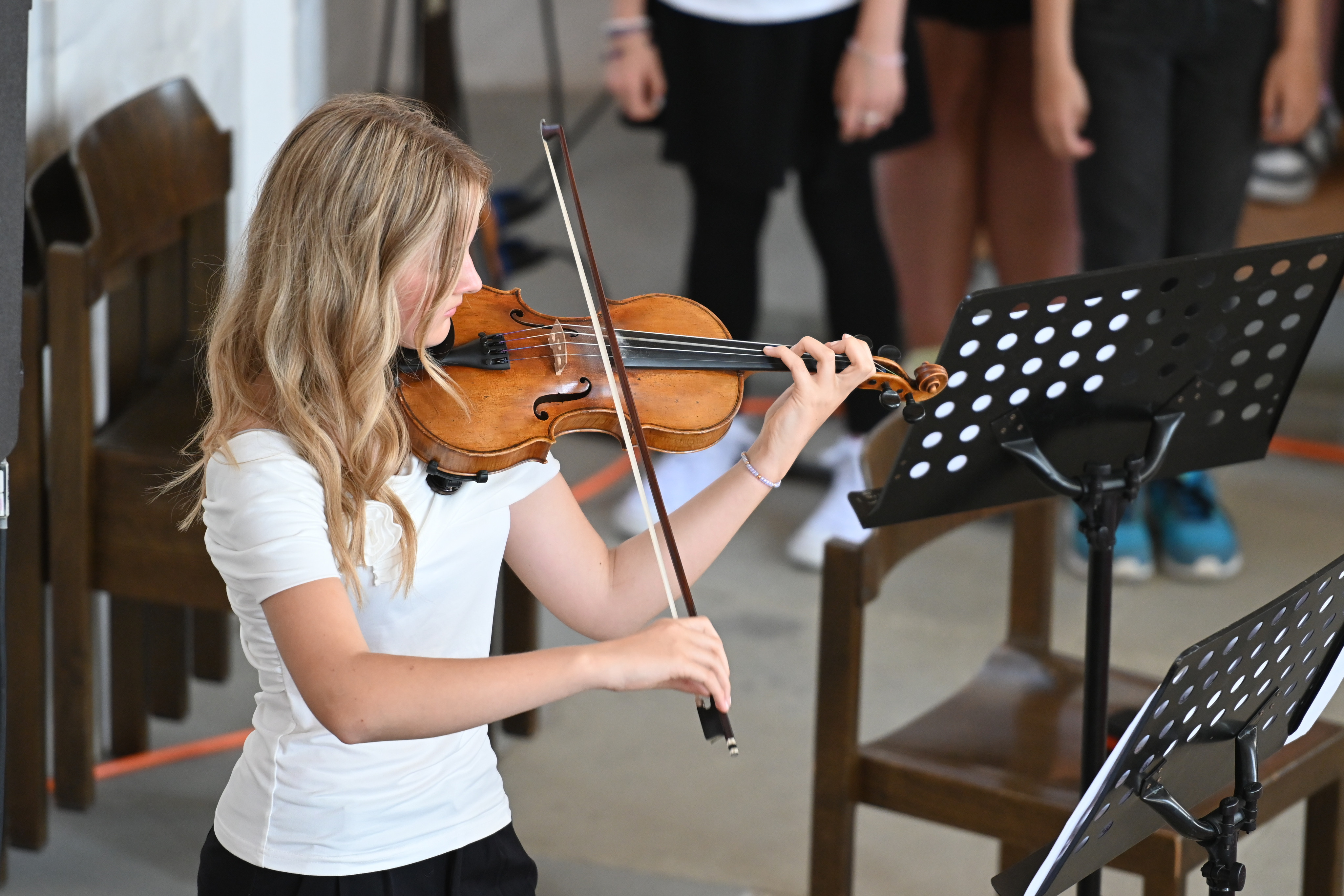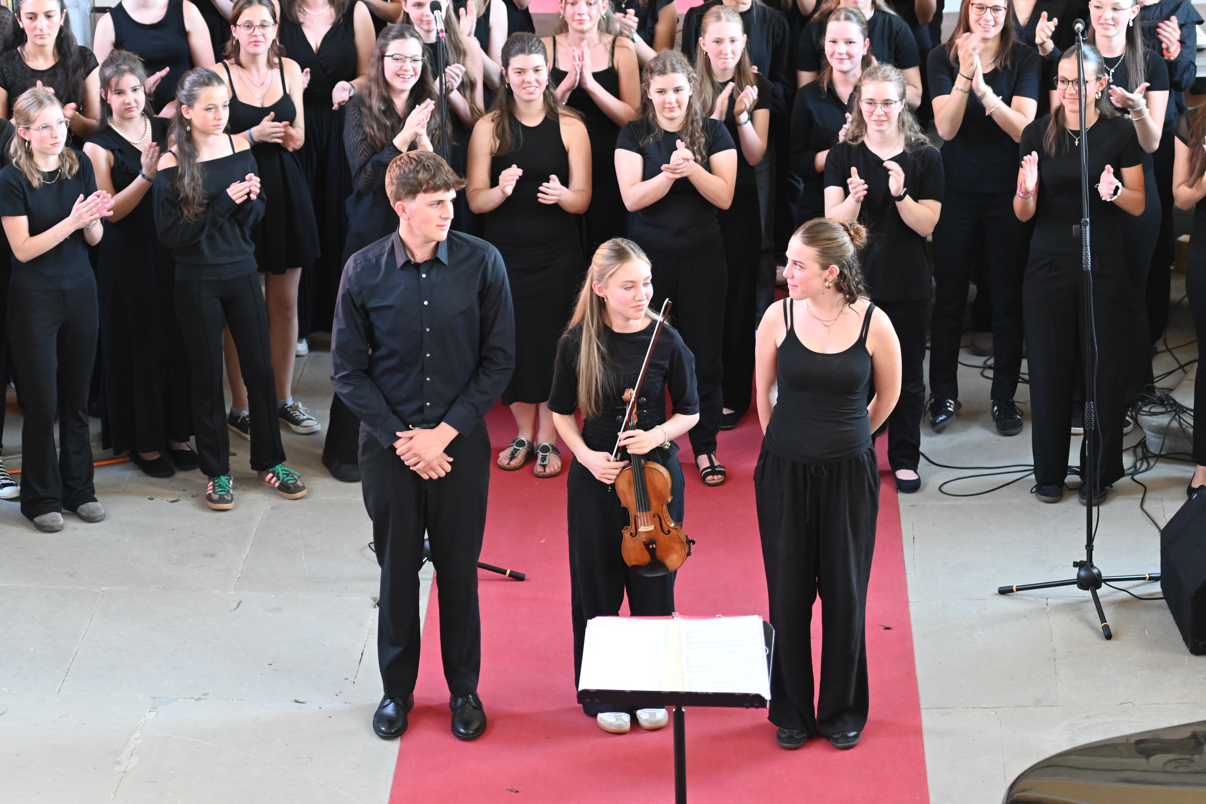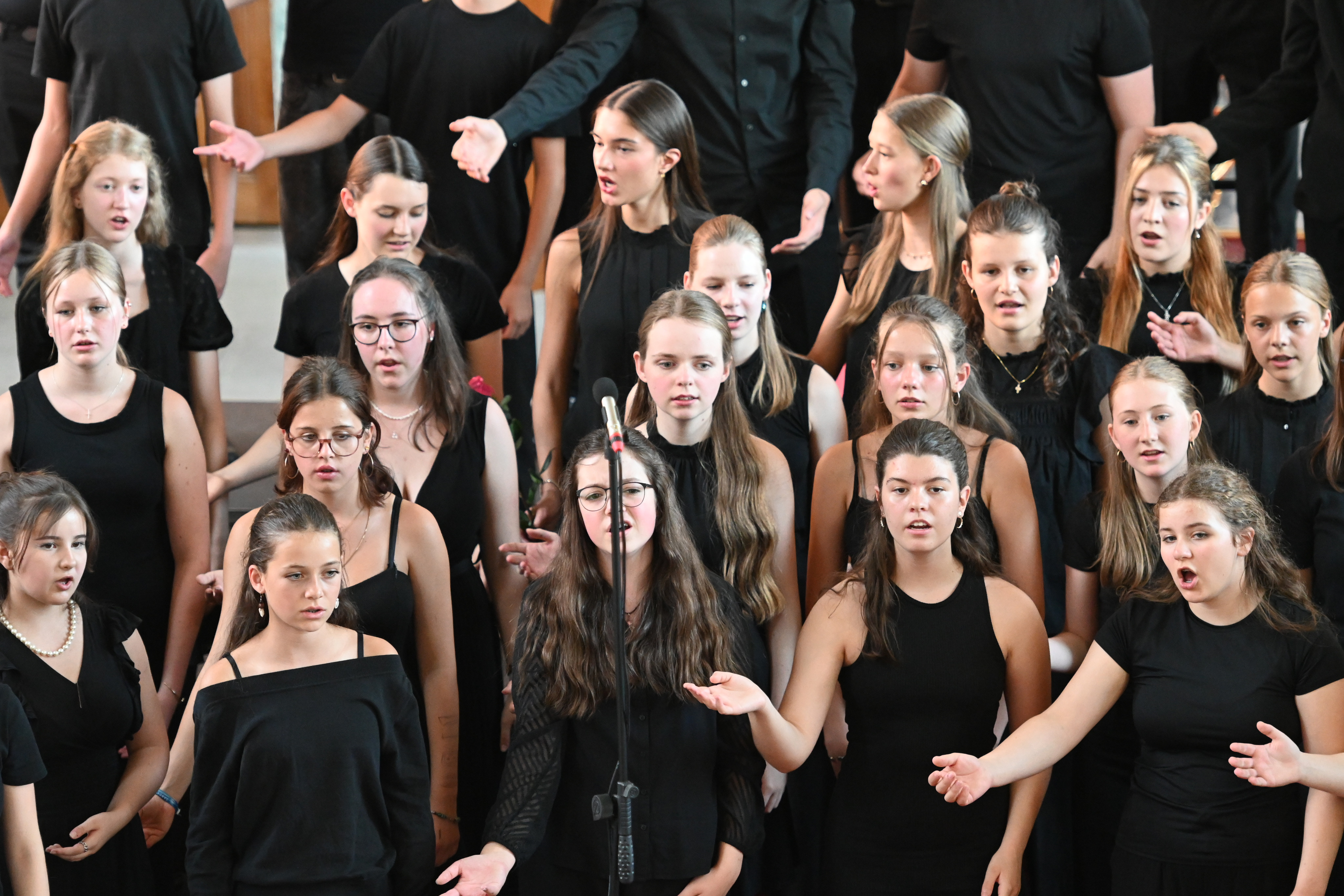 Mit großer Leidenschaft musizierten am Donnerstag 250 Schülerinnen und Schüler von 15:00 bis 21:00 Uhr in Orchestern, Chören und Bands. Es waren Kunstwerke zu bewundern und Leckereien zu genießen: Die Besucherinnen und Besucher wurden auf eine Reise der Sinne mitgenommen – aus der Kapelle ertönte vom Unterstufen-Chor „Wir sind united“ oder „Du bist so wertvoll", mitreißende, nachdenkliche, schwungvolle und alle zusammen wundervolle Lieder, die Mut machen und stärken. Der Chor und die Vocals stimmten Fröhliches wie “Mamma Mia” und “From NOw On”, aber auch Nachdenklicheres an, so passte „Bleibe bei uns Herr, es will Abend werden“ wundervoll zur abendlichen Atmosphäre und war mit „Million Dreams“ und "Don't Stop Me Now" eine wunderbare Gelegenheit, die Abiturient*innen musikalisch zu verabschieden und zu ermutigen, den eigenen Weg zu gehen und die eigenen Träume und Visionen zu leben.