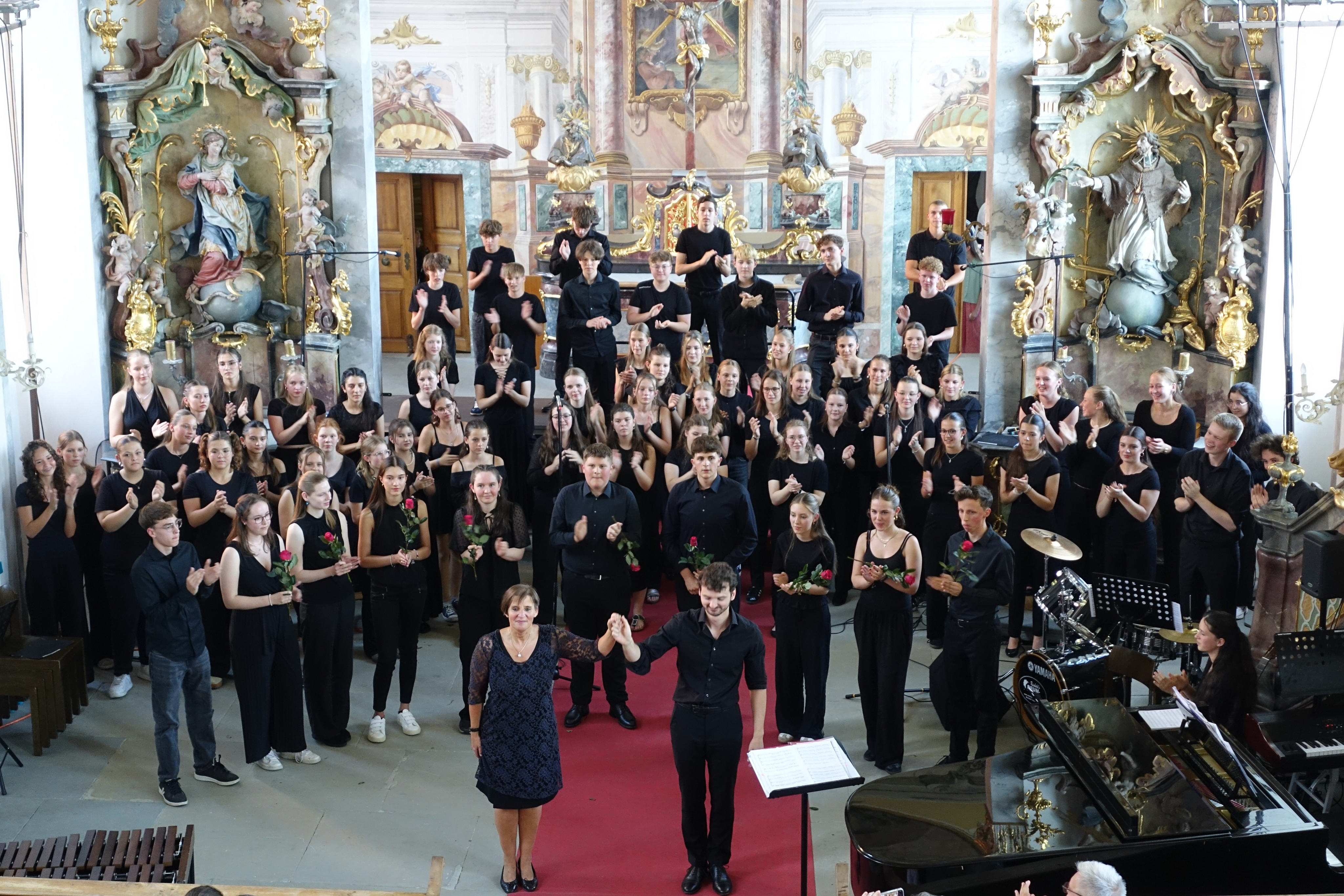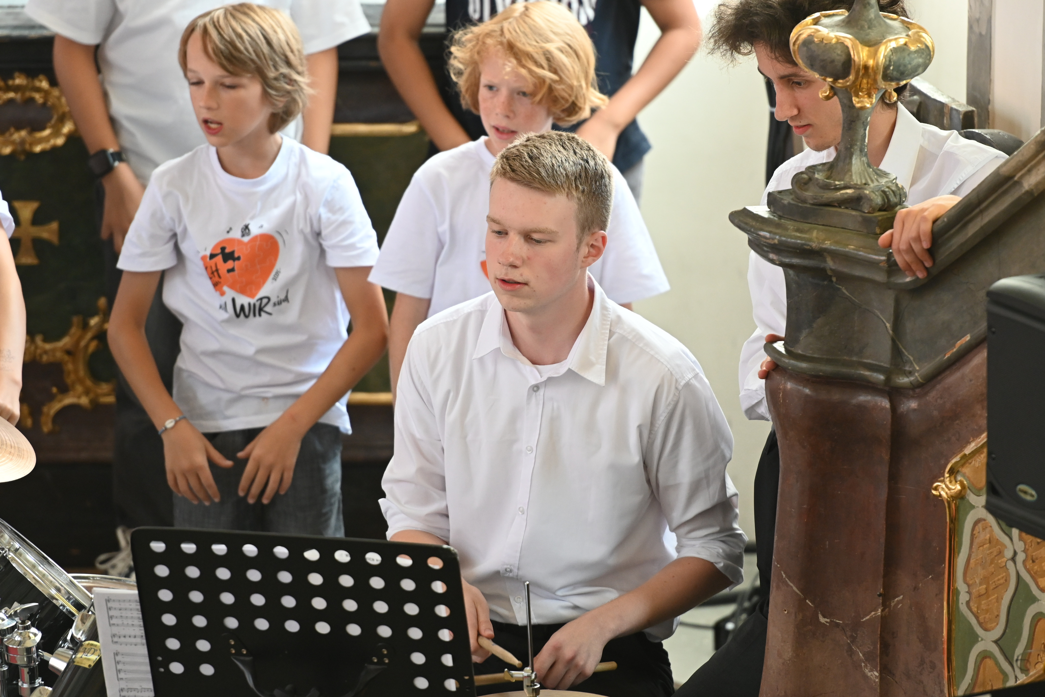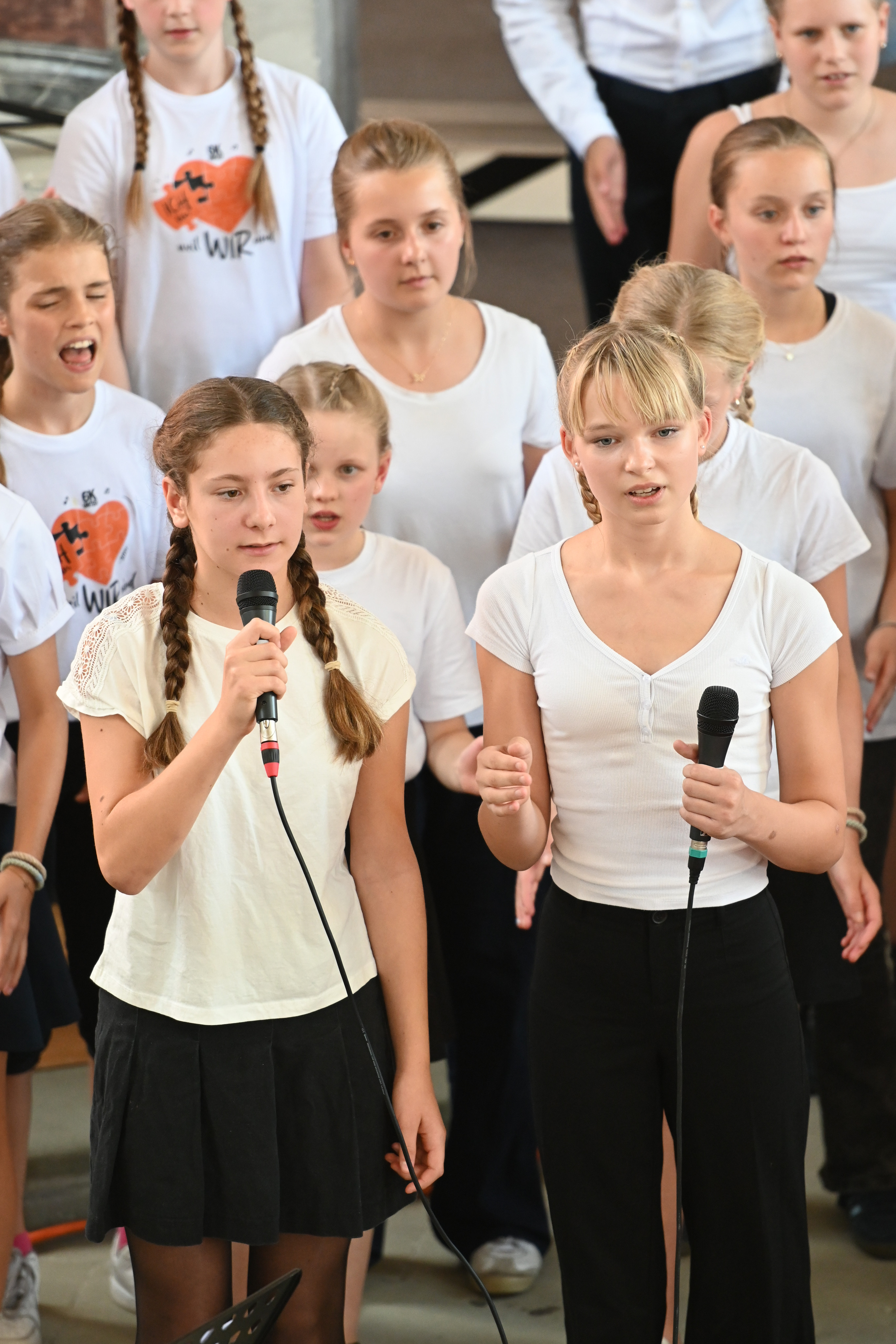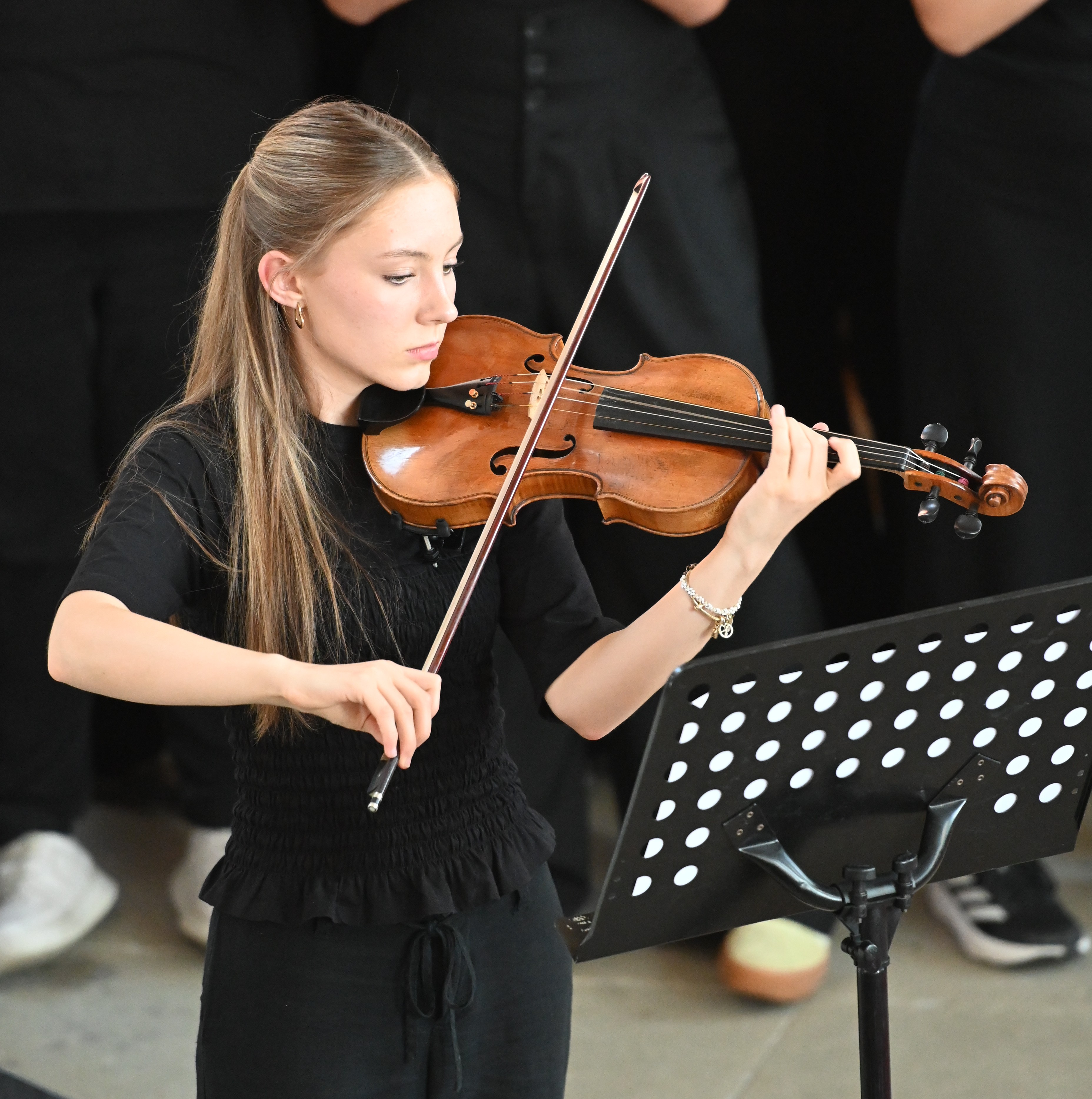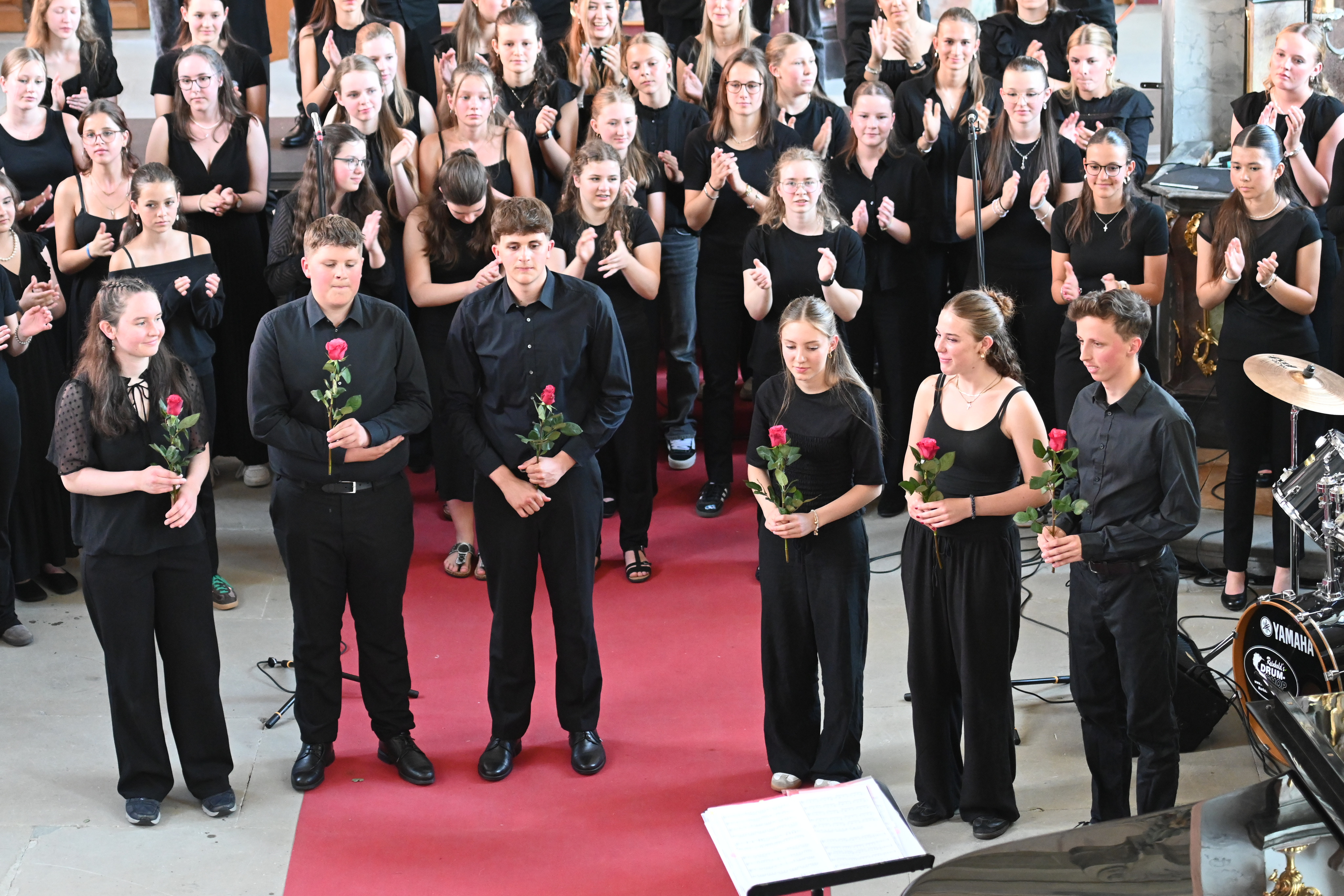 Mit großer Leidenschaft musizierten am Donnerstag 250 Schülerinnen und Schüler von 15:00 bis 21:00 Uhr in Orchestern, Chören und Bands. Es waren Kunstwerke zu bewundern und Leckereien zu genießen: Die Besucherinnen und Besucher wurden auf eine Reise der Sinne mitgenommen – aus der Kapelle ertönte vom Unterstufen-Chor „Wir sind united“ oder „Du bist so wertvoll", mitreißende, nachdenkliche, schwungvolle und alle zusammen wundervolle Lieder, die Mut machen und stärken. Der Chor und die Vocals stimmten Fröhliches wie “Mamma Mia” und “From NOw On”, aber auch Nachdenklicheres an, so passte „Bleibe bei uns Herr, es will Abend werden“ wundervoll zur abendlichen Atmosphäre und war mit „Million Dreams“ und "Don't Stop Me Now" eine wunderbare Gelegenheit, die Abiturient*innen musikalisch zu verabschieden und zu ermutigen, den eigenen Weg zu gehen und die eigenen Träume und Visionen zu leben.