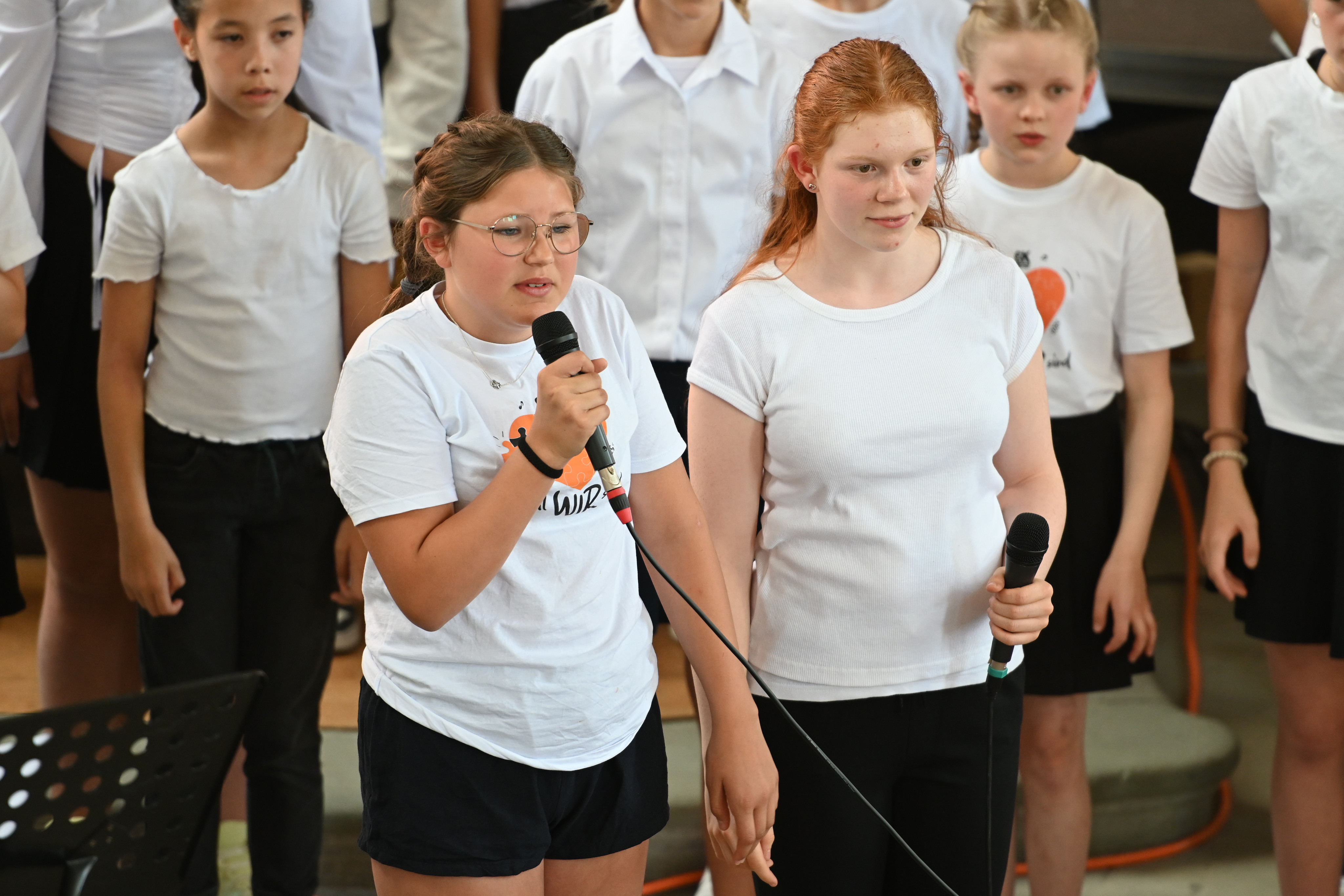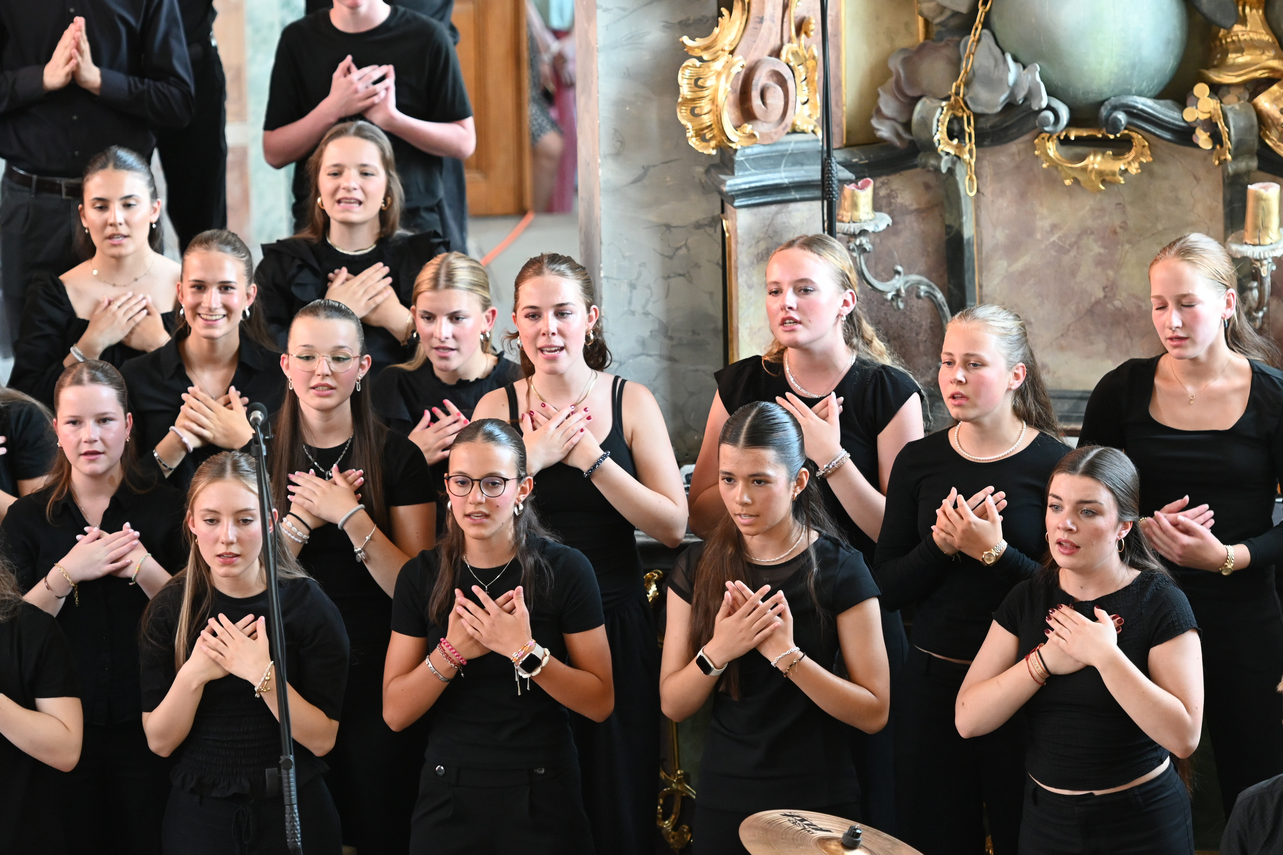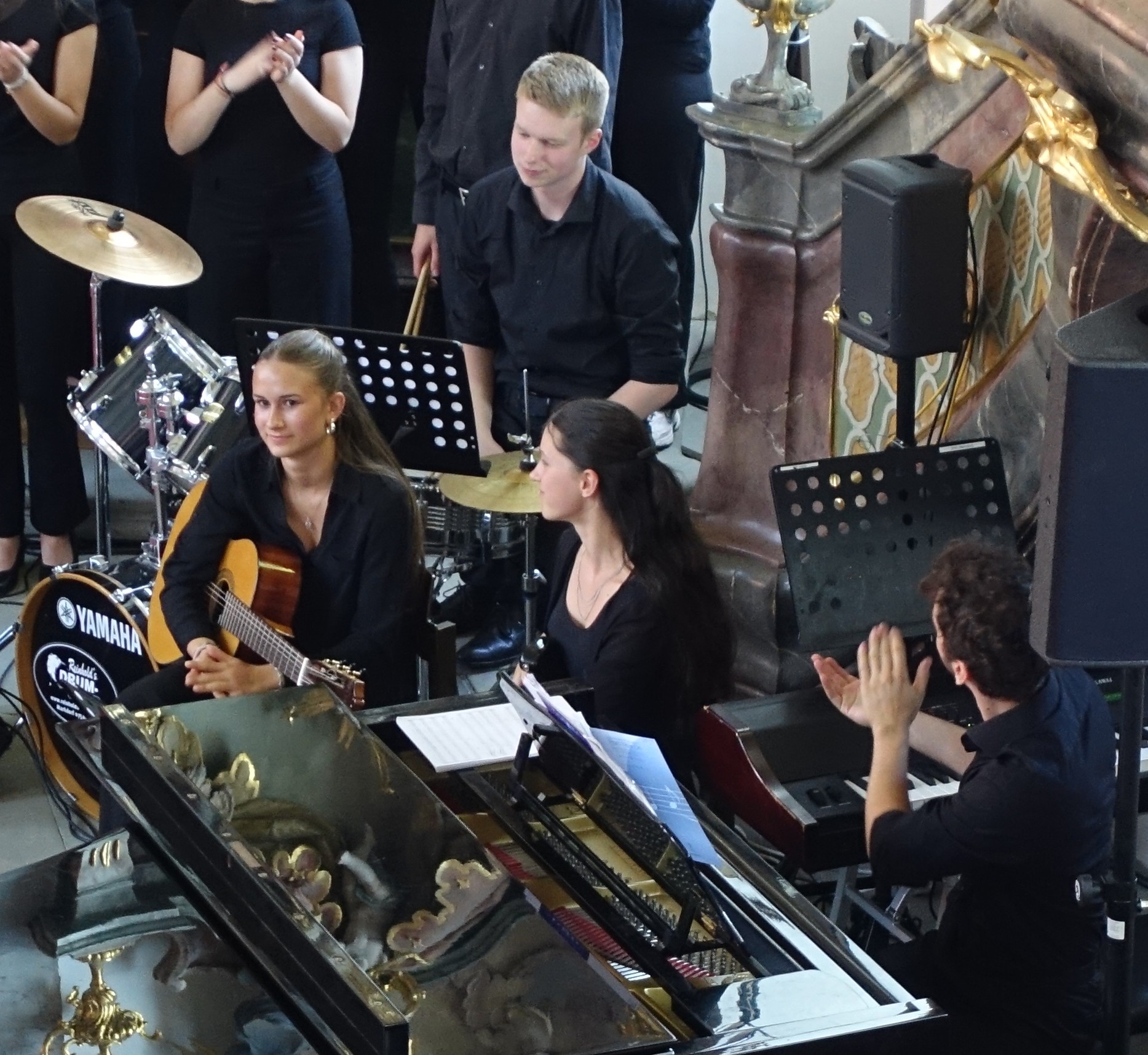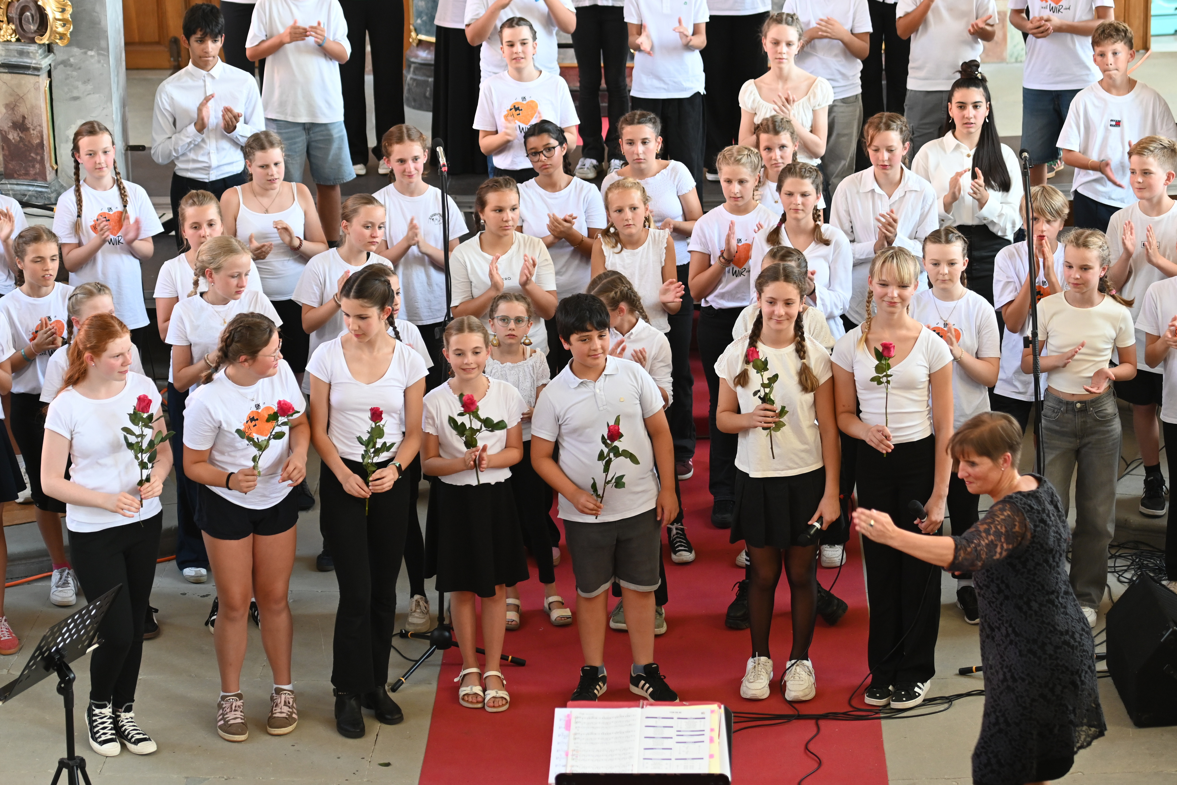 Mit großer Leidenschaft musizierten am Donnerstag 250 Schülerinnen und Schüler von 15:00 bis 21:00 Uhr in Orchestern, Chören und Bands. Es waren Kunstwerke zu bewundern und Leckereien zu genießen: Die Besucherinnen und Besucher wurden auf eine Reise der Sinne mitgenommen – aus der Kapelle ertönte vom Unterstufen-Chor „Wir sind united“ oder „Du bist so wertvoll", mitreißende, nachdenkliche, schwungvolle und alle zusammen wundervolle Lieder, die Mut machen und stärken. Der Chor und die Vocals stimmten Fröhliches wie “Mamma Mia” und “From NOw On”, aber auch Nachdenklicheres an, so passte „Bleibe bei uns Herr, es will Abend werden“ wundervoll zur abendlichen Atmosphäre und war mit „Million Dreams“ und "Don't Stop Me Now" eine wunderbare Gelegenheit, die Abiturient*innen musikalisch zu verabschieden und zu ermutigen, den eigenen Weg zu gehen und die eigenen Träume und Visionen zu leben.