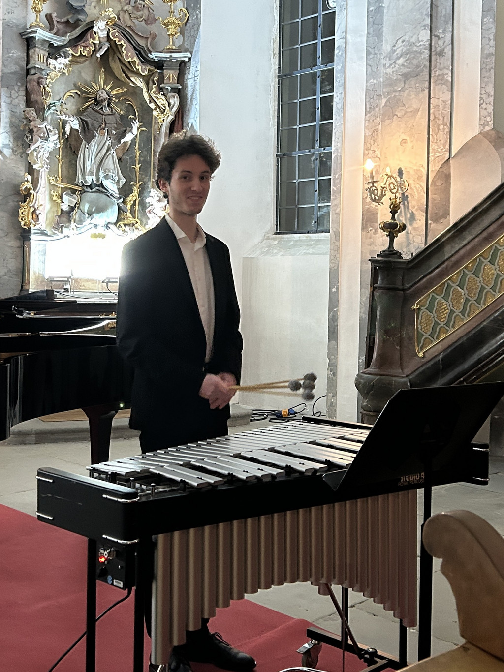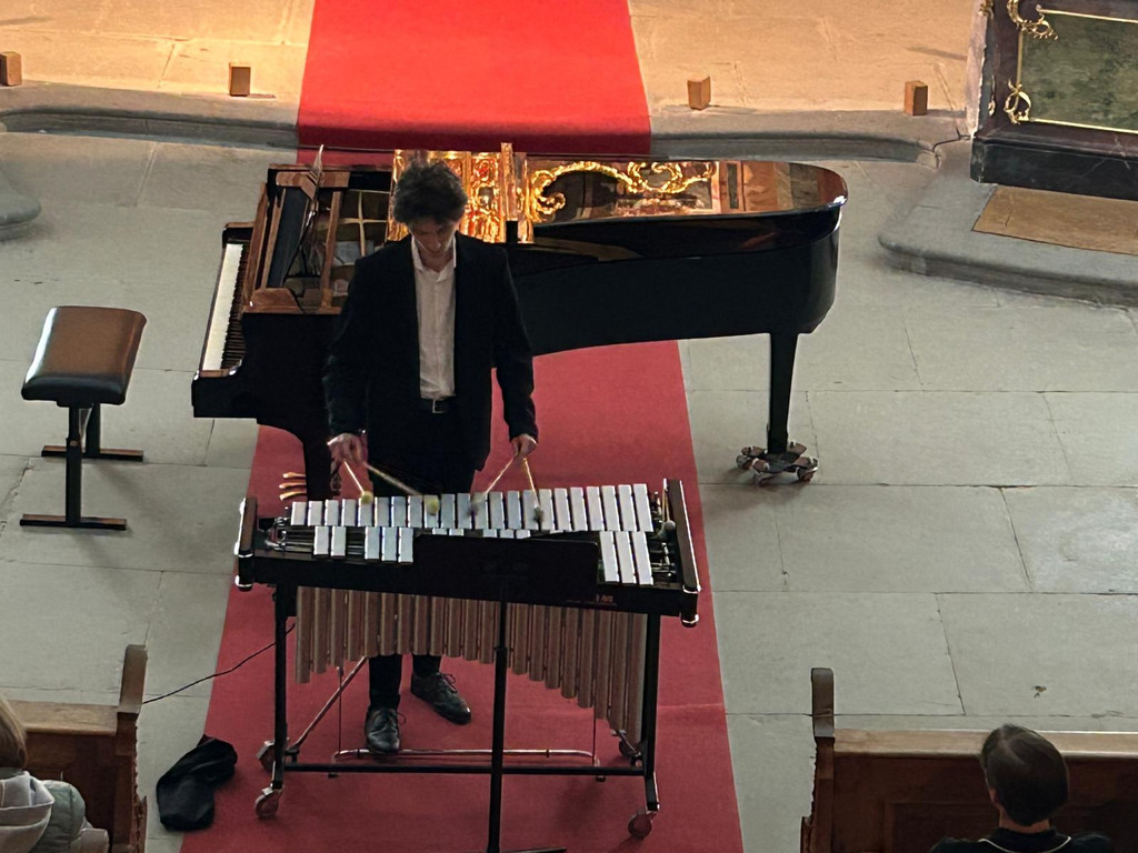 Warme beschwingte Klänge des Cellos, abgelöst von virtuoser Klaviermusik aus Schumanns Abegg-Variationen eröffneten den Abend. Das Posaunen-Duo brachte mit dem Stück „Clown“ von Treinelt eine Atmosphäre von Schalk und Witz in die Seminarkapelle. Das empfindsam interpretierte Geigensolo erhielt einen Kontrapunkt durch die pompösen Klänge Rachmaninovs. Anklänge an Filmmusik durch das Trompeten-Trio, welche die Querflöte in sanftere Gewässer führte – Meodien wie sanfte Wellen – Stille erzeugend im Klang. Das Vibraphon-Solo zog zum Schluss ein staundendes Publikum in seinen Bann.