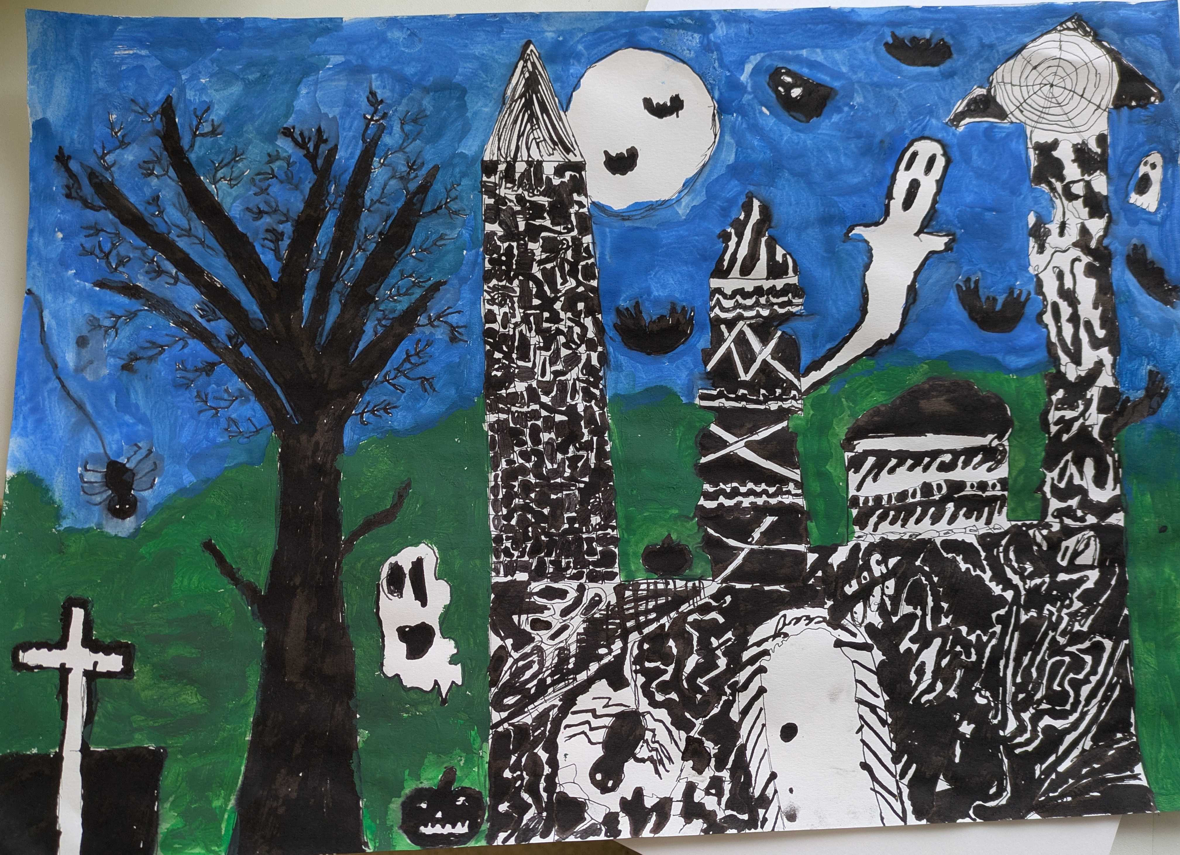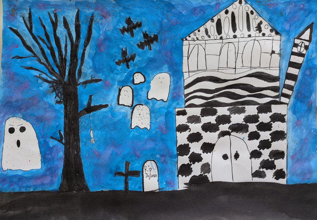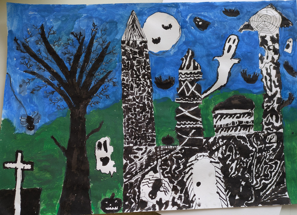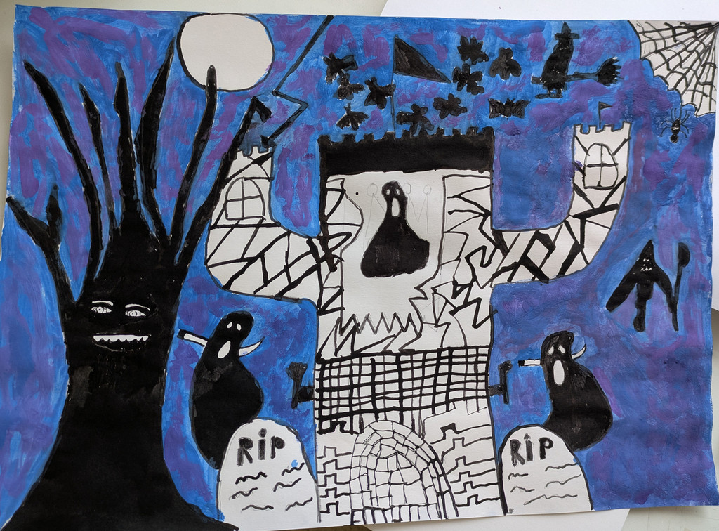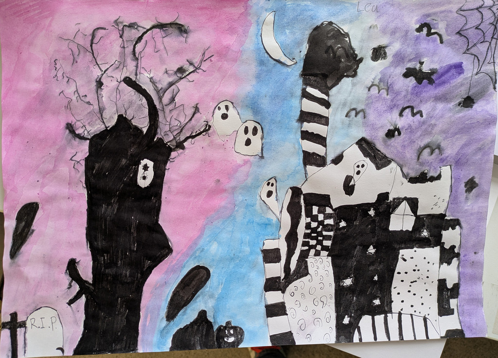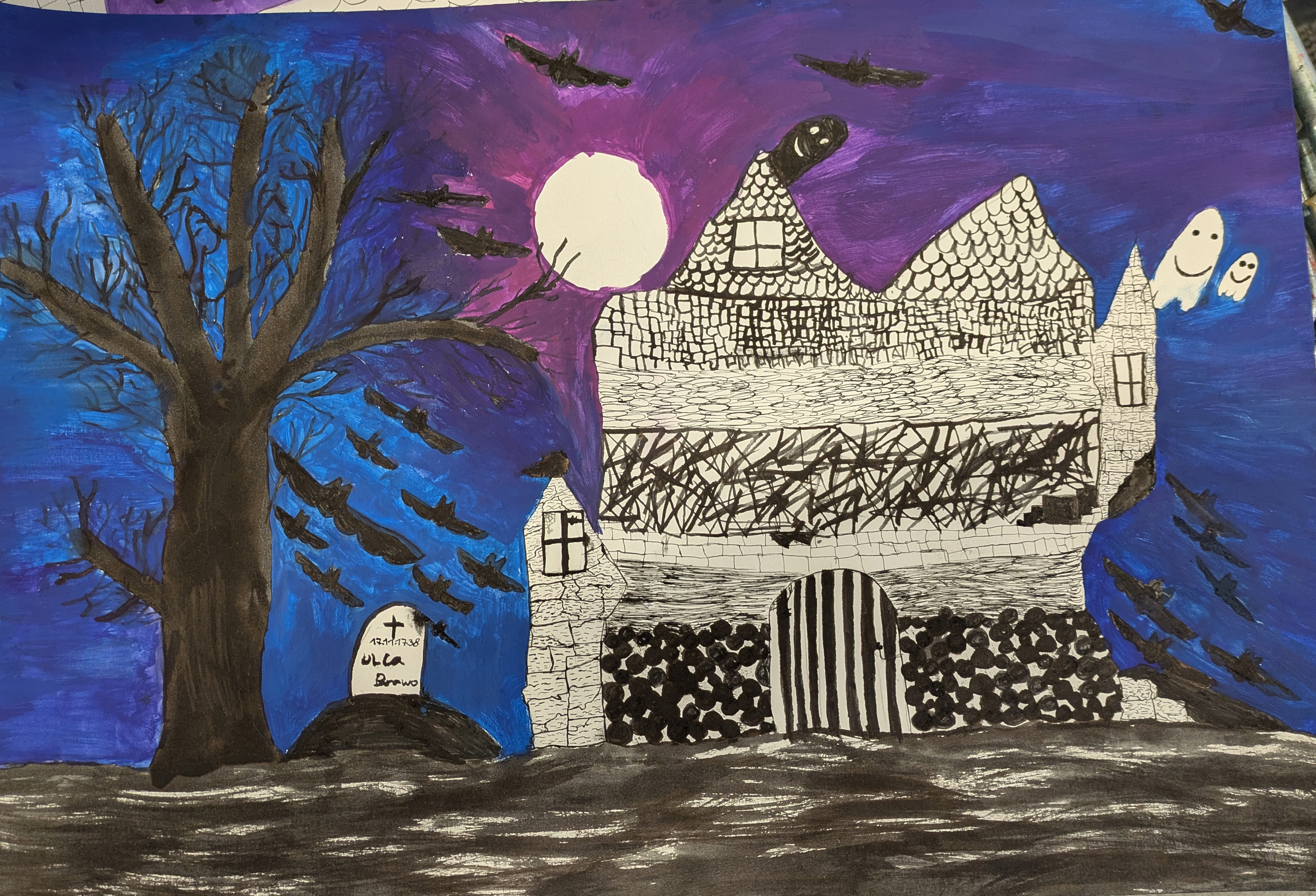 Klassenstufe 5: "Halloween Haus mit gruseligen Gesellen".
