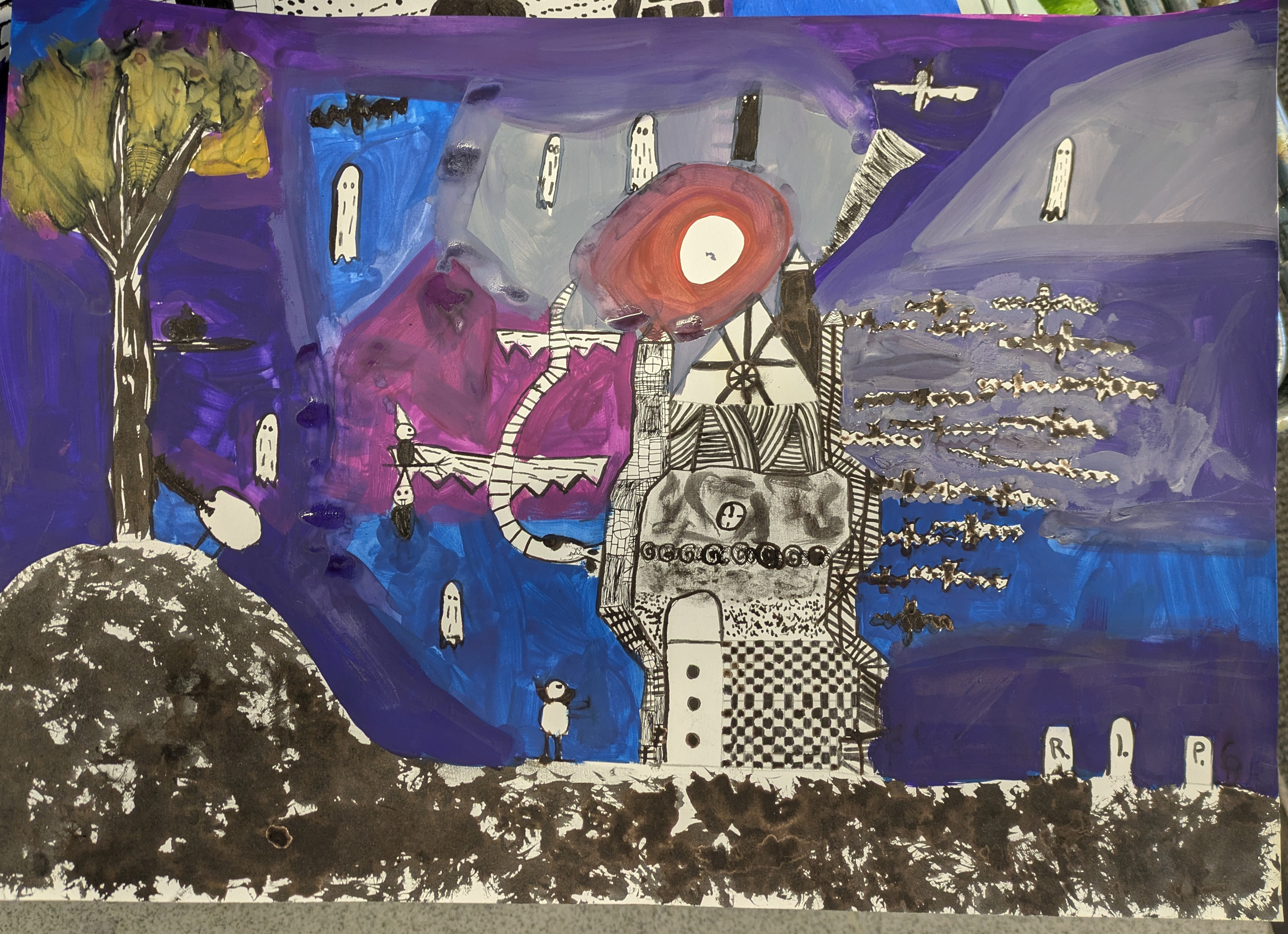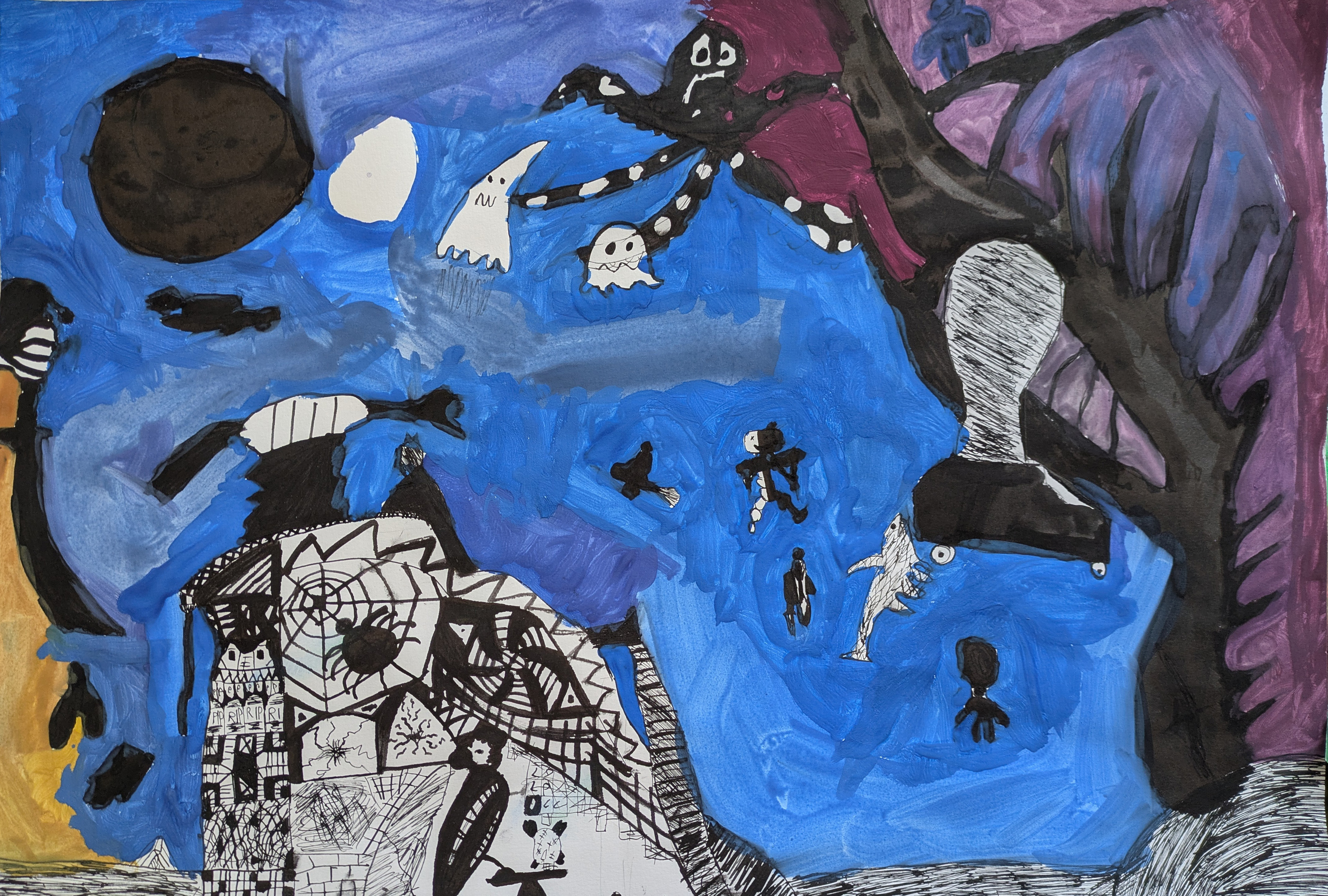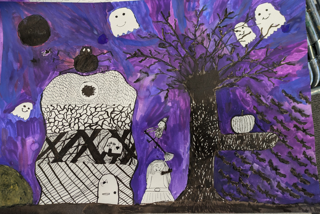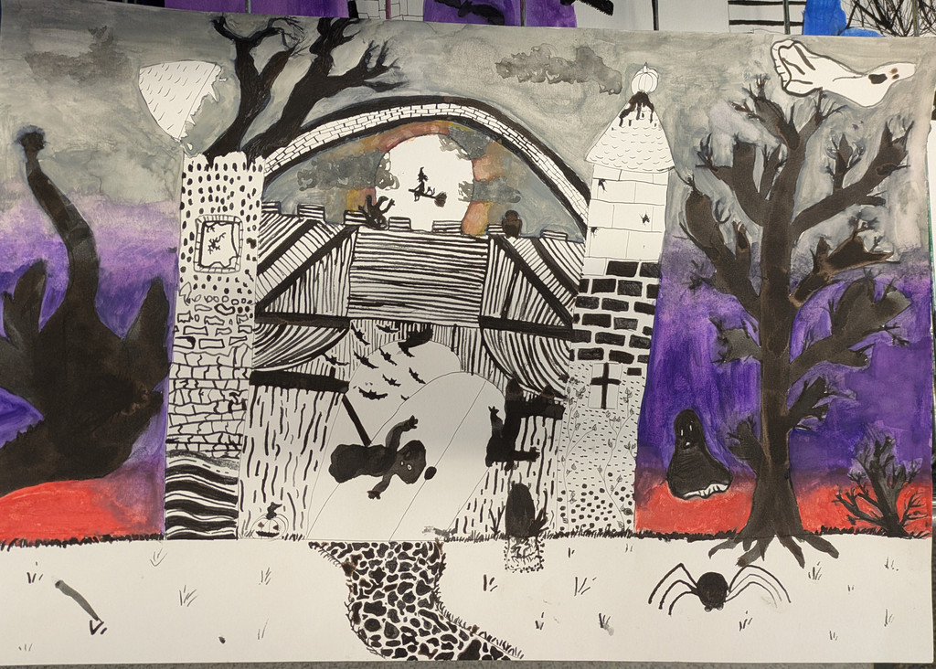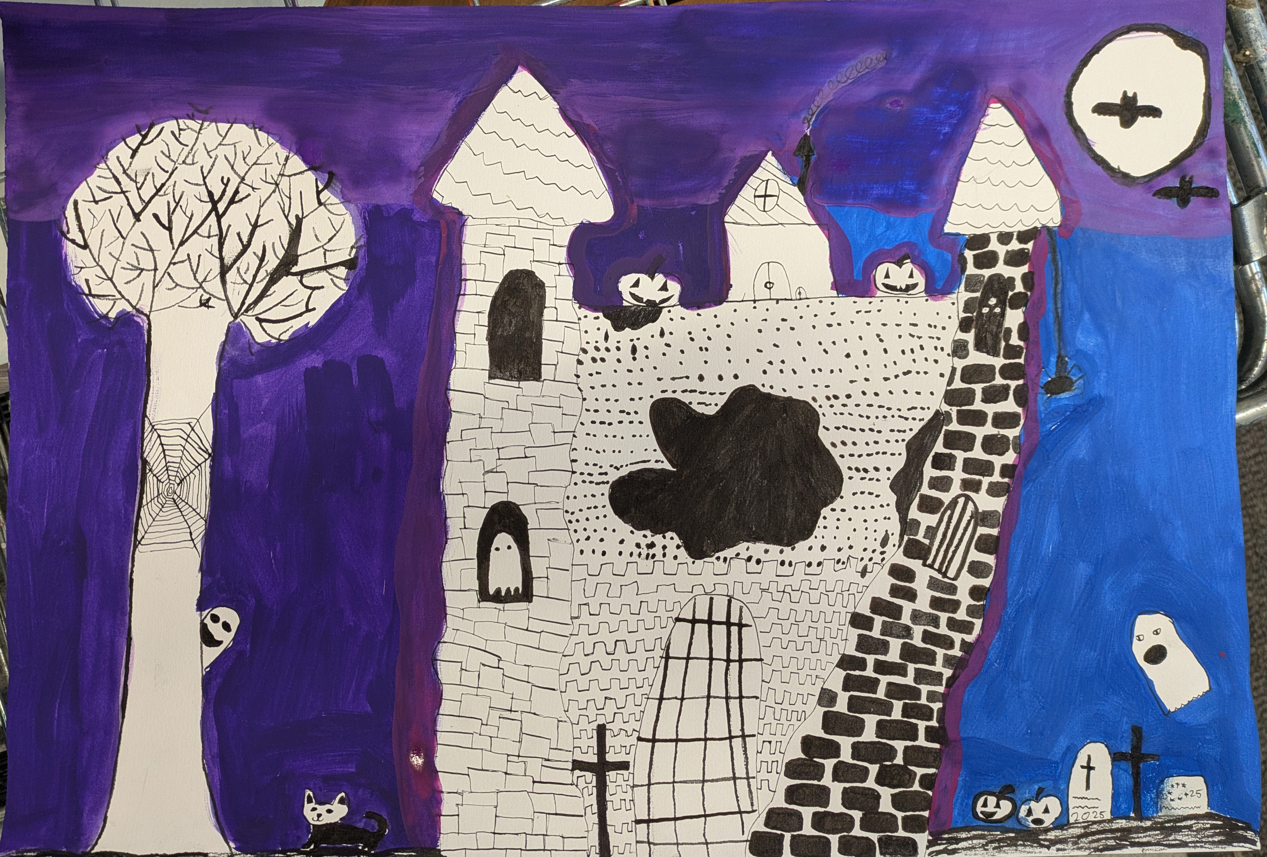 Klassenstufe 5: "Halloween Haus mit gruseligen Gesellen".