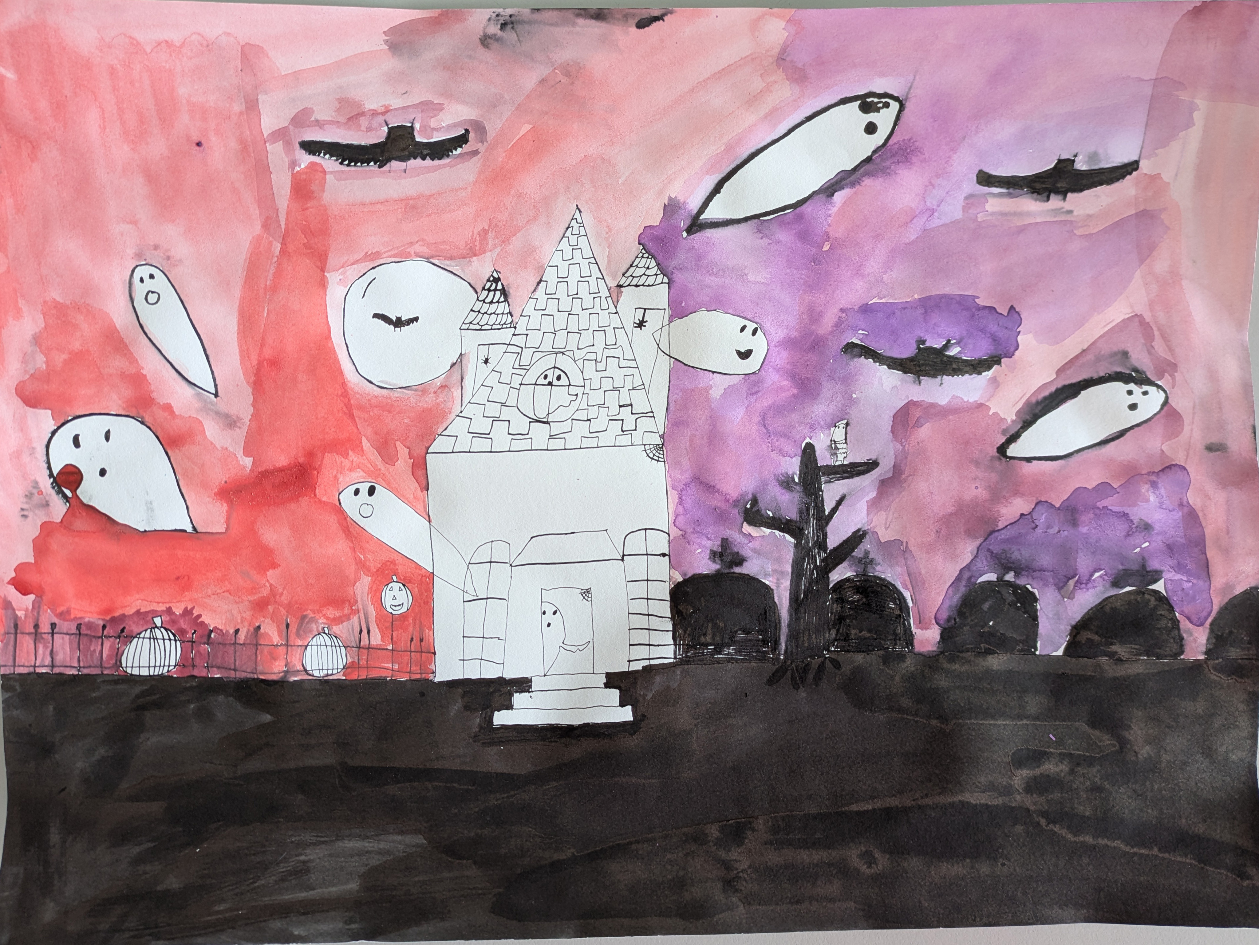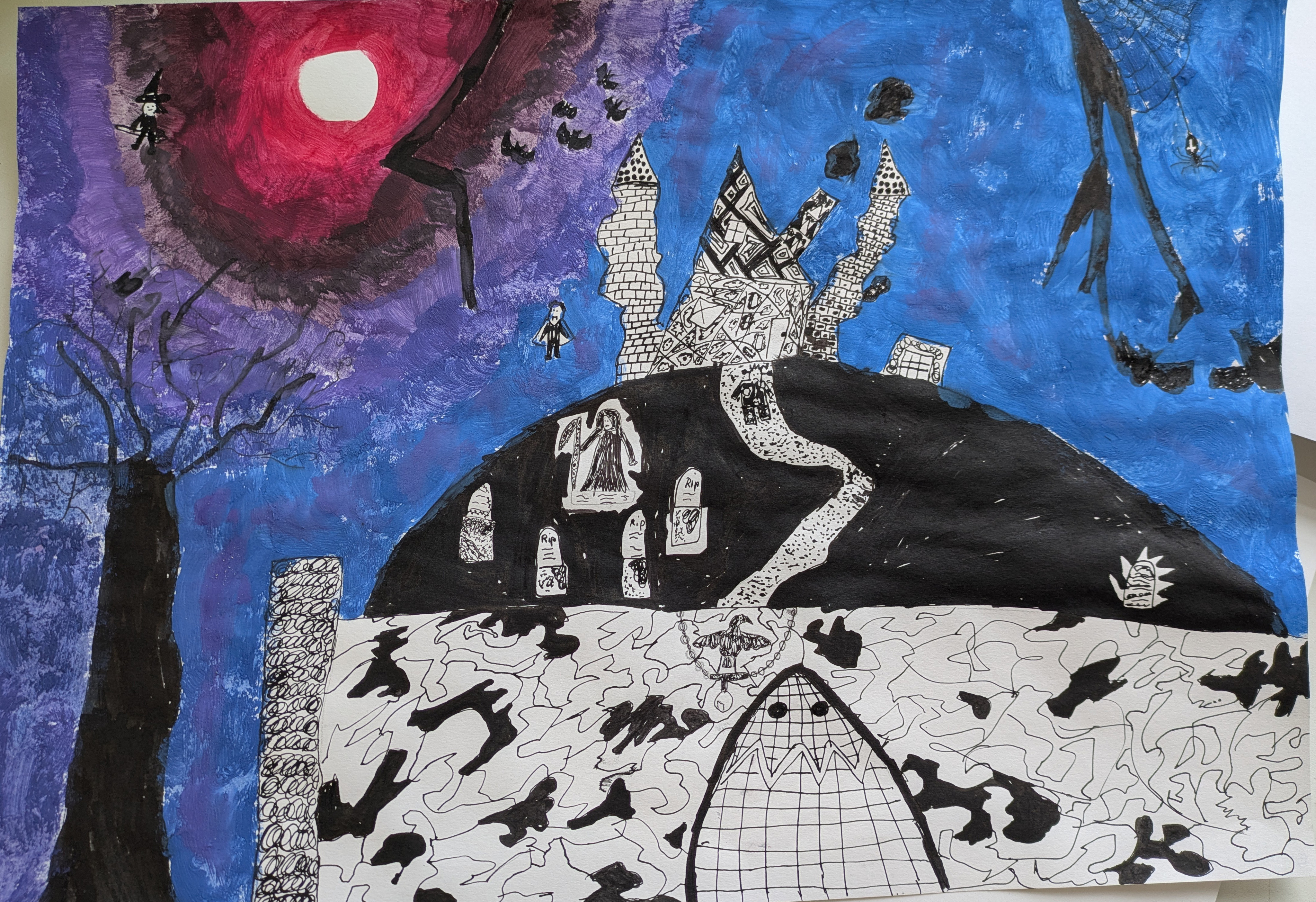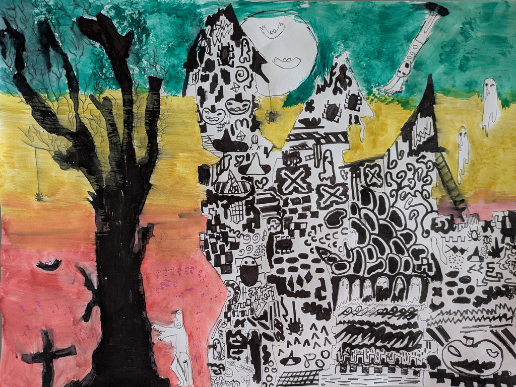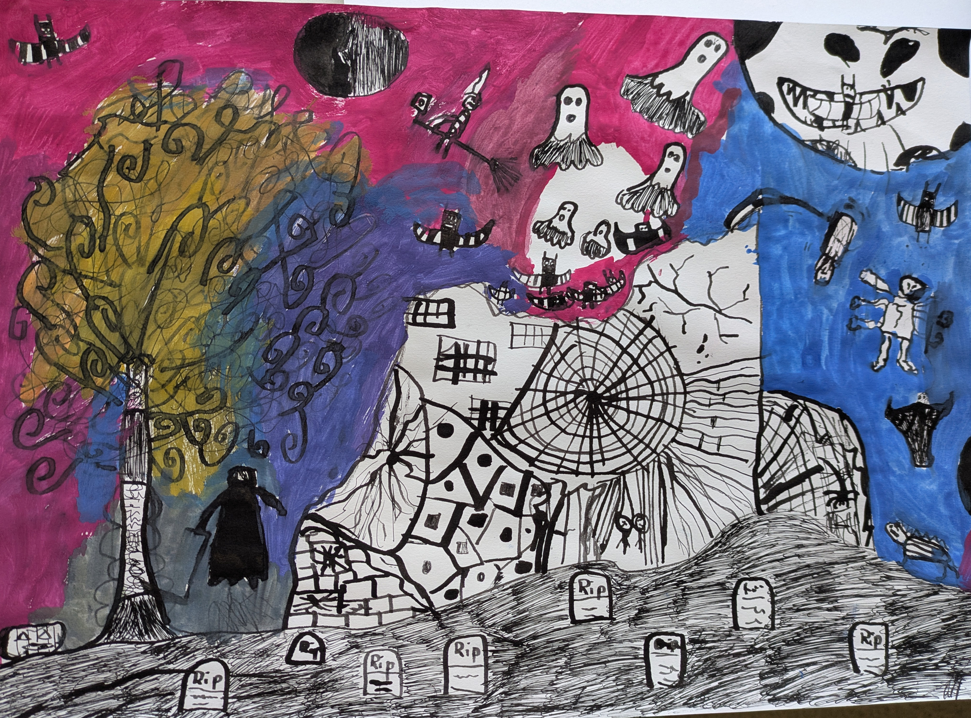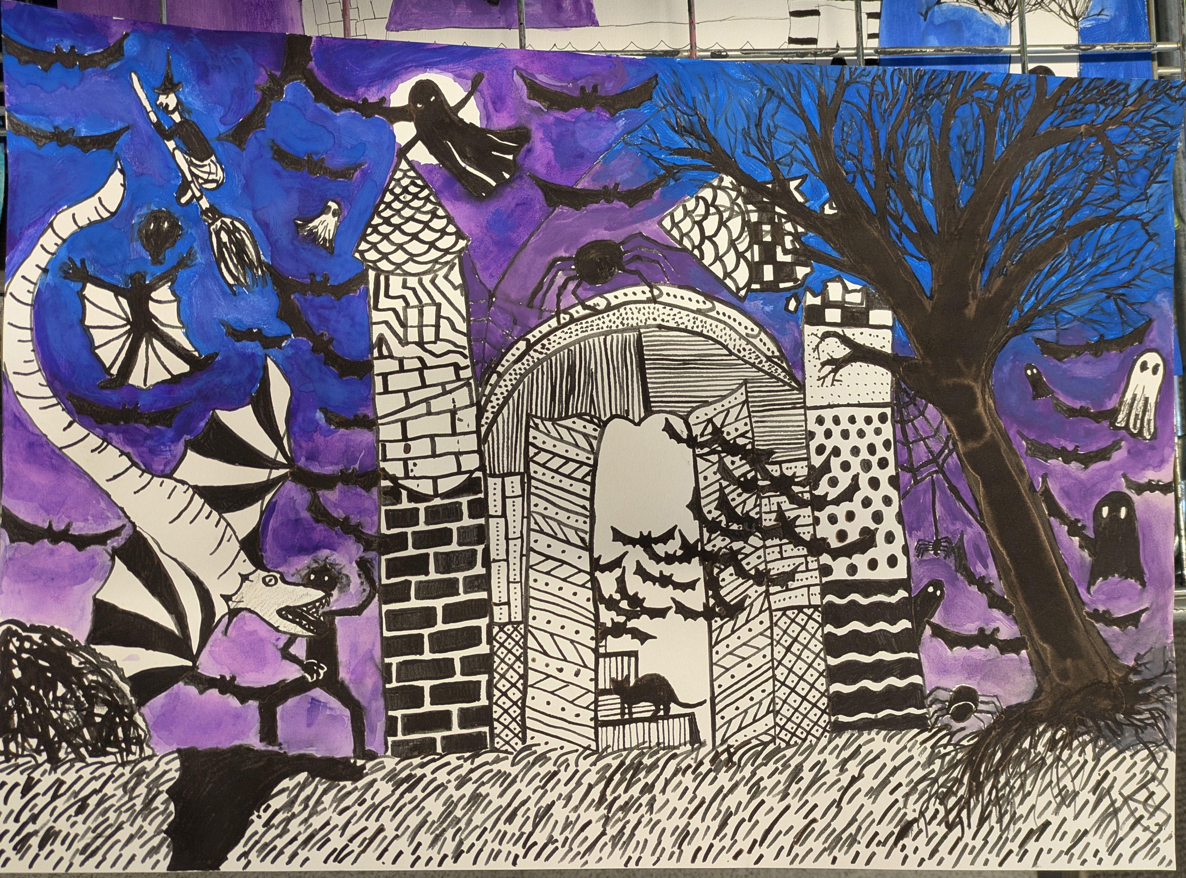 Klassenstufe 5: "Halloween Haus mit gruseligen Gesellen".