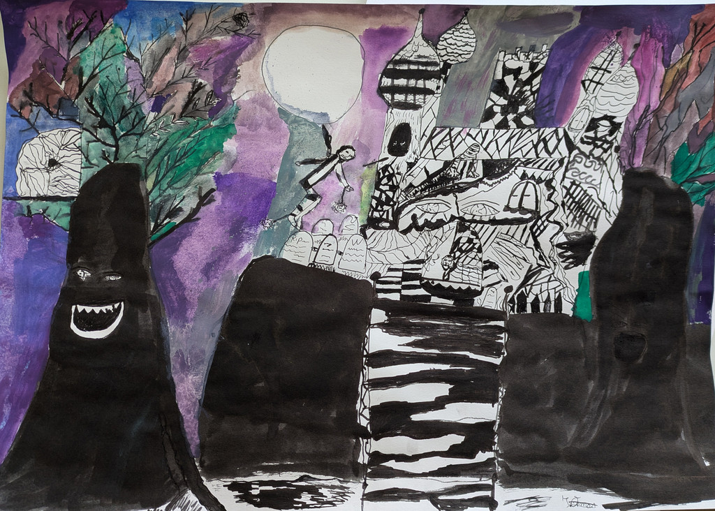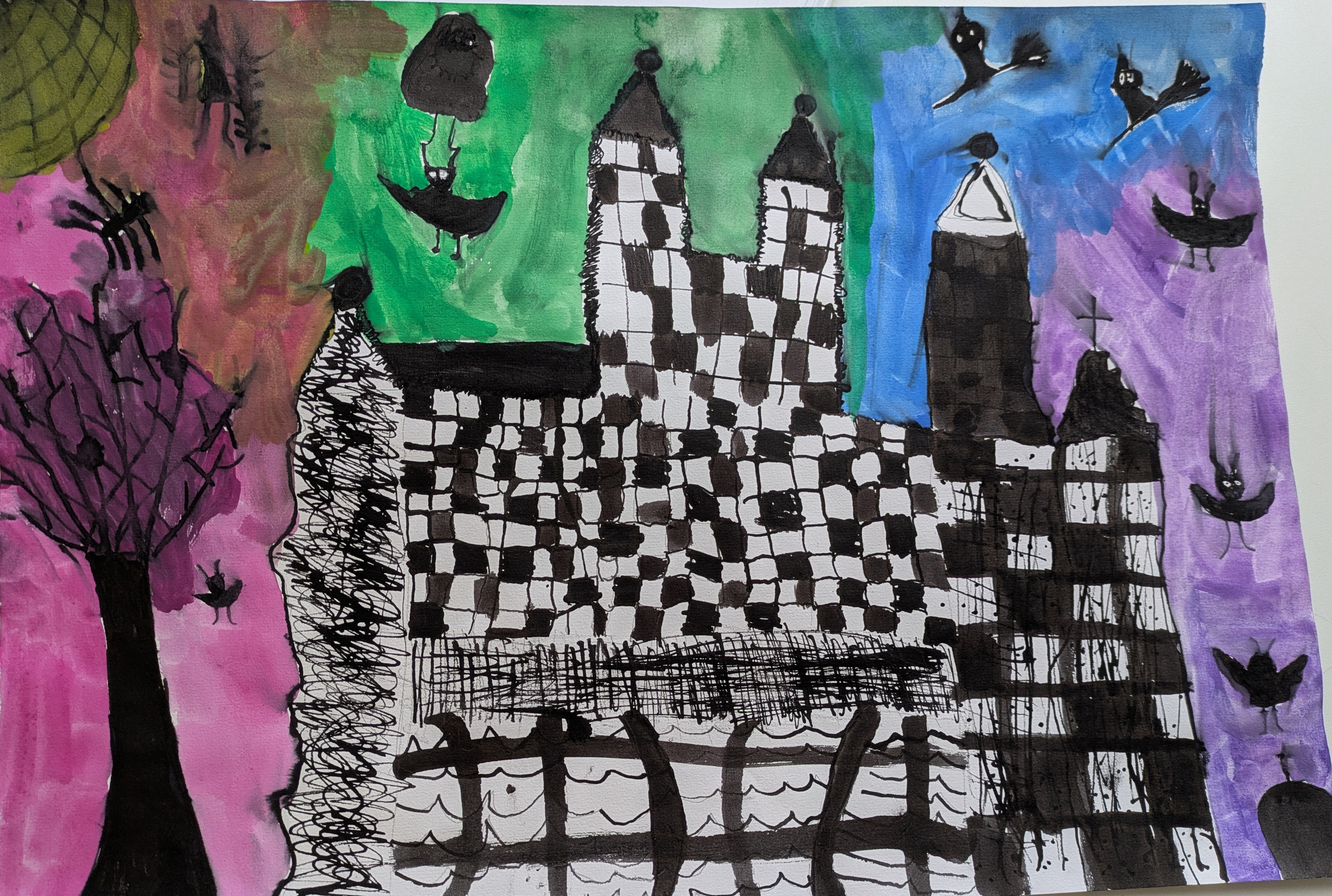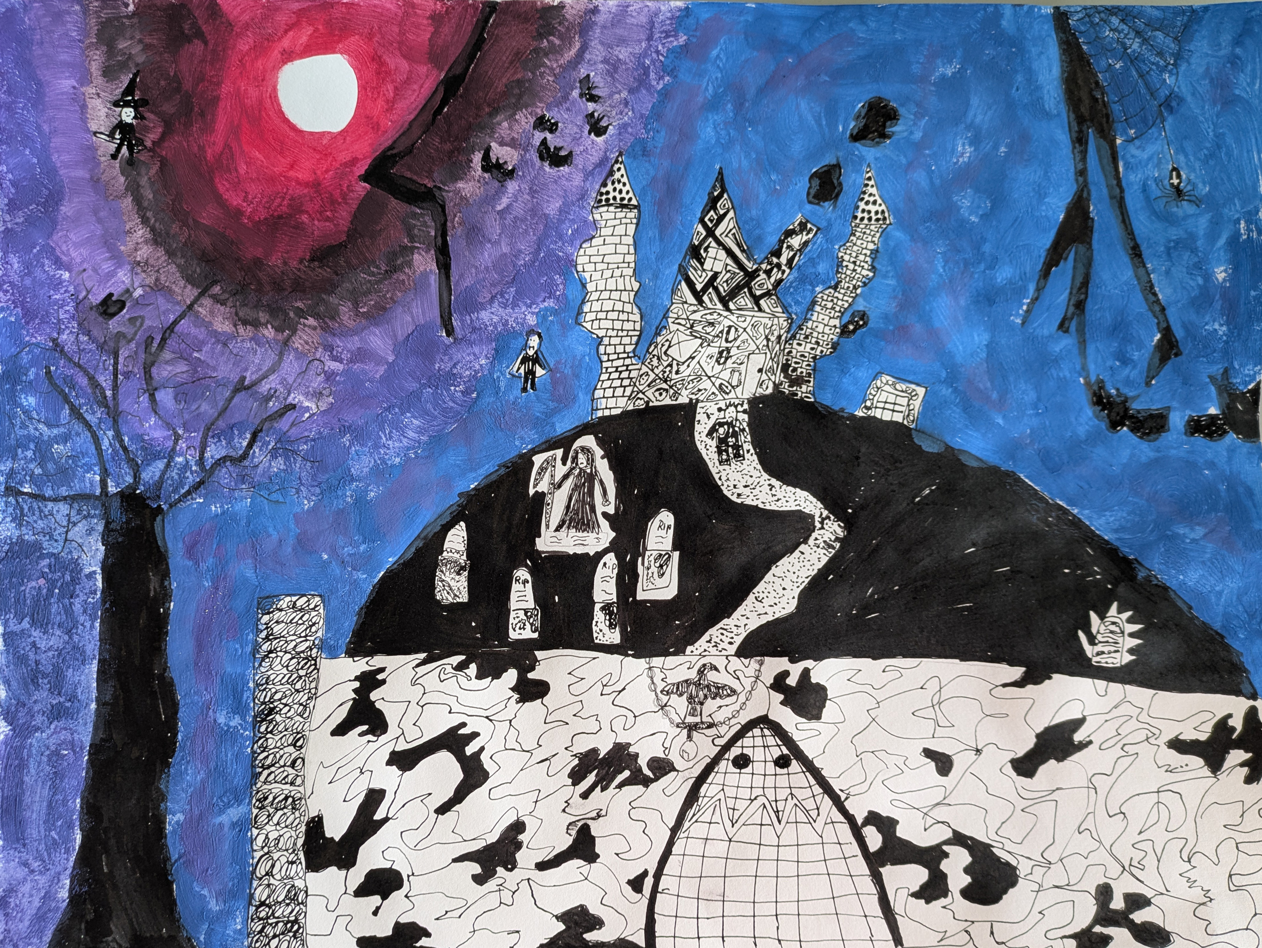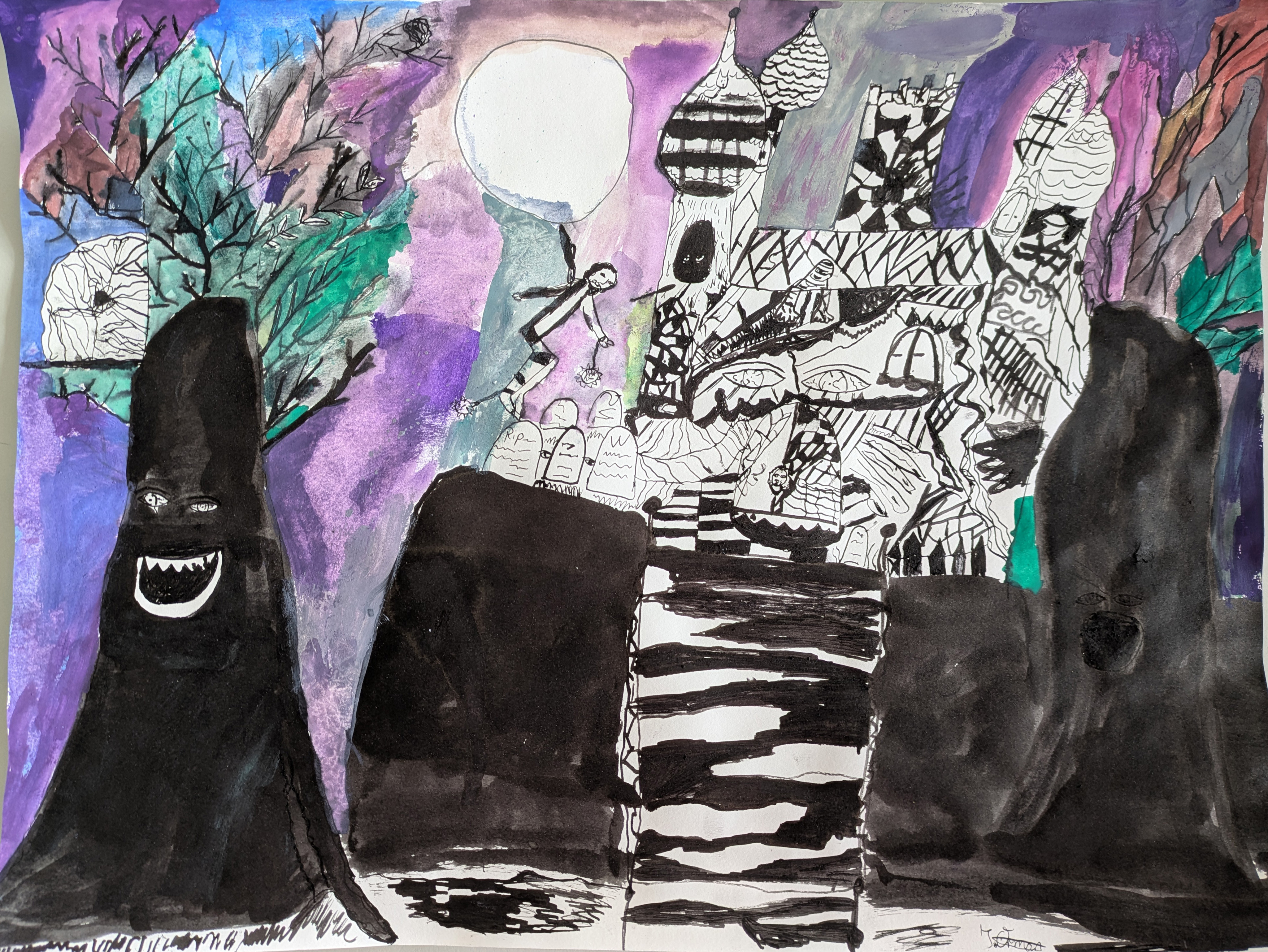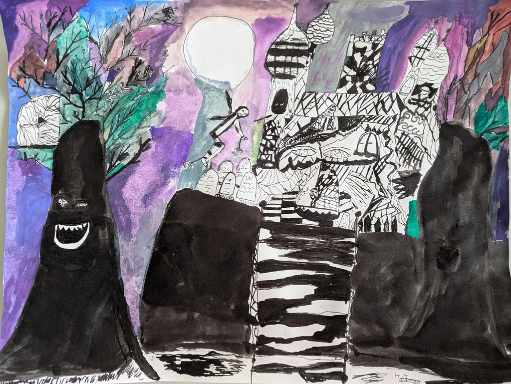 Klassenstufe 5: "Halloween Haus mit gruseligen Gesellen".