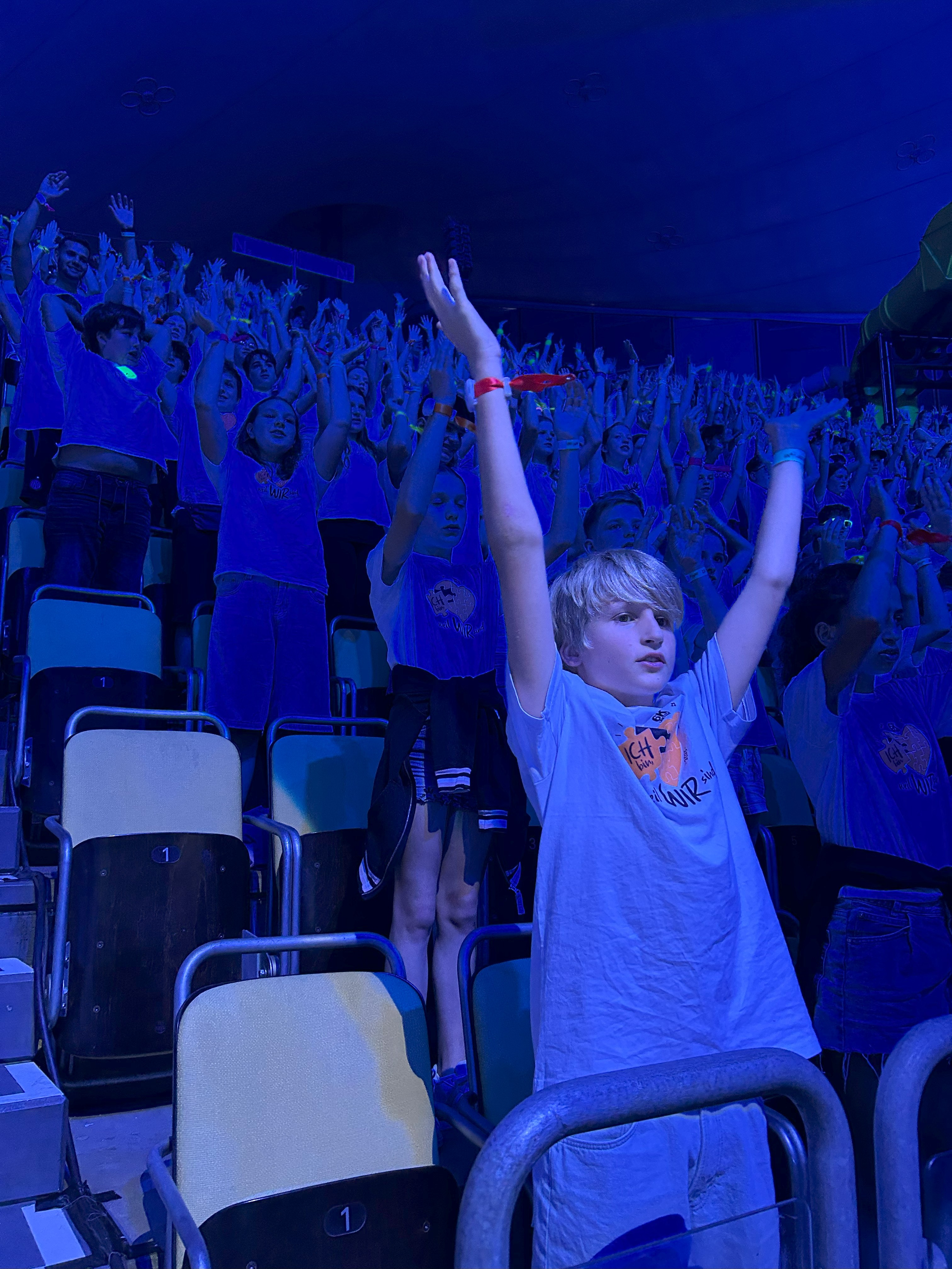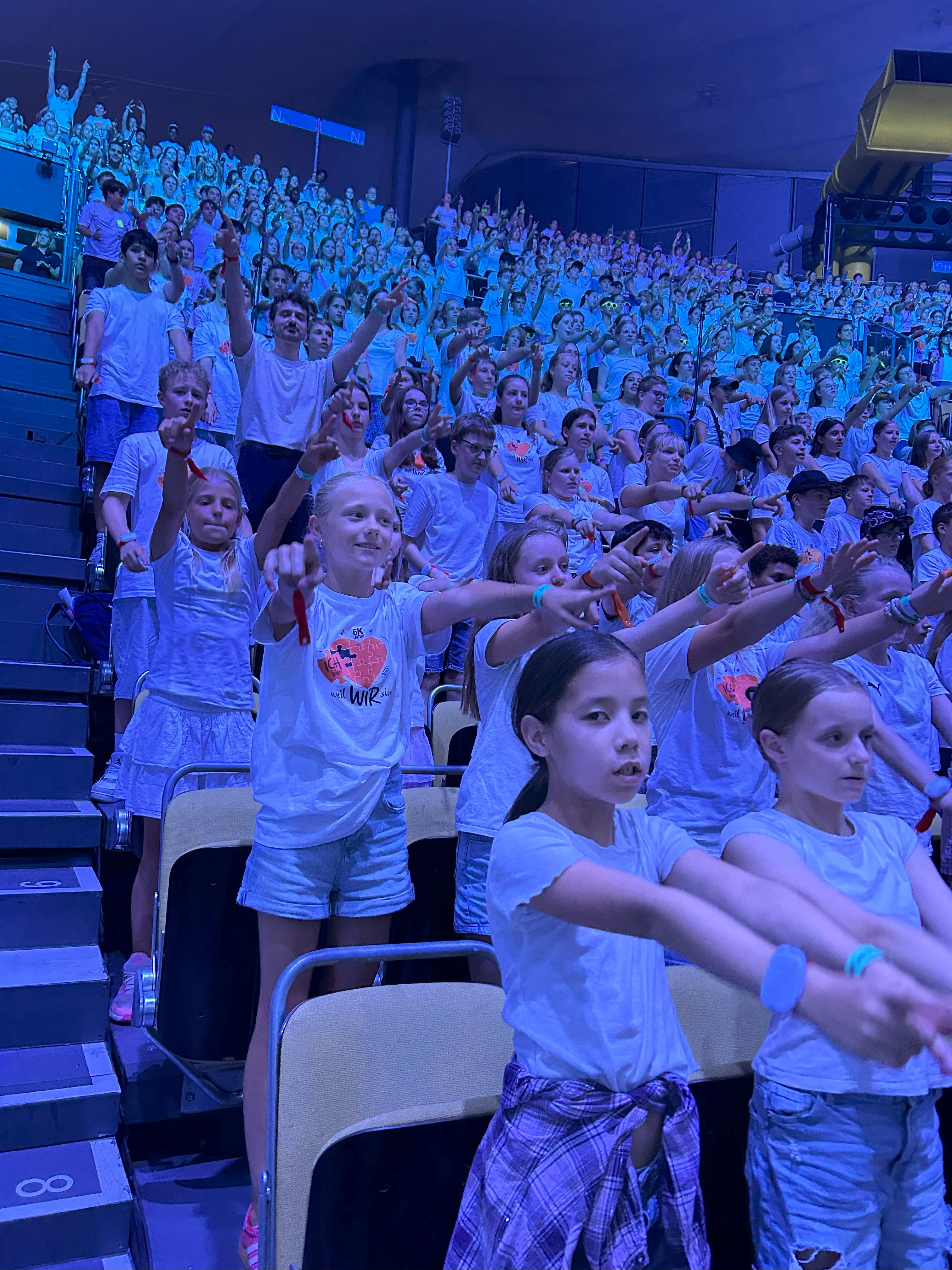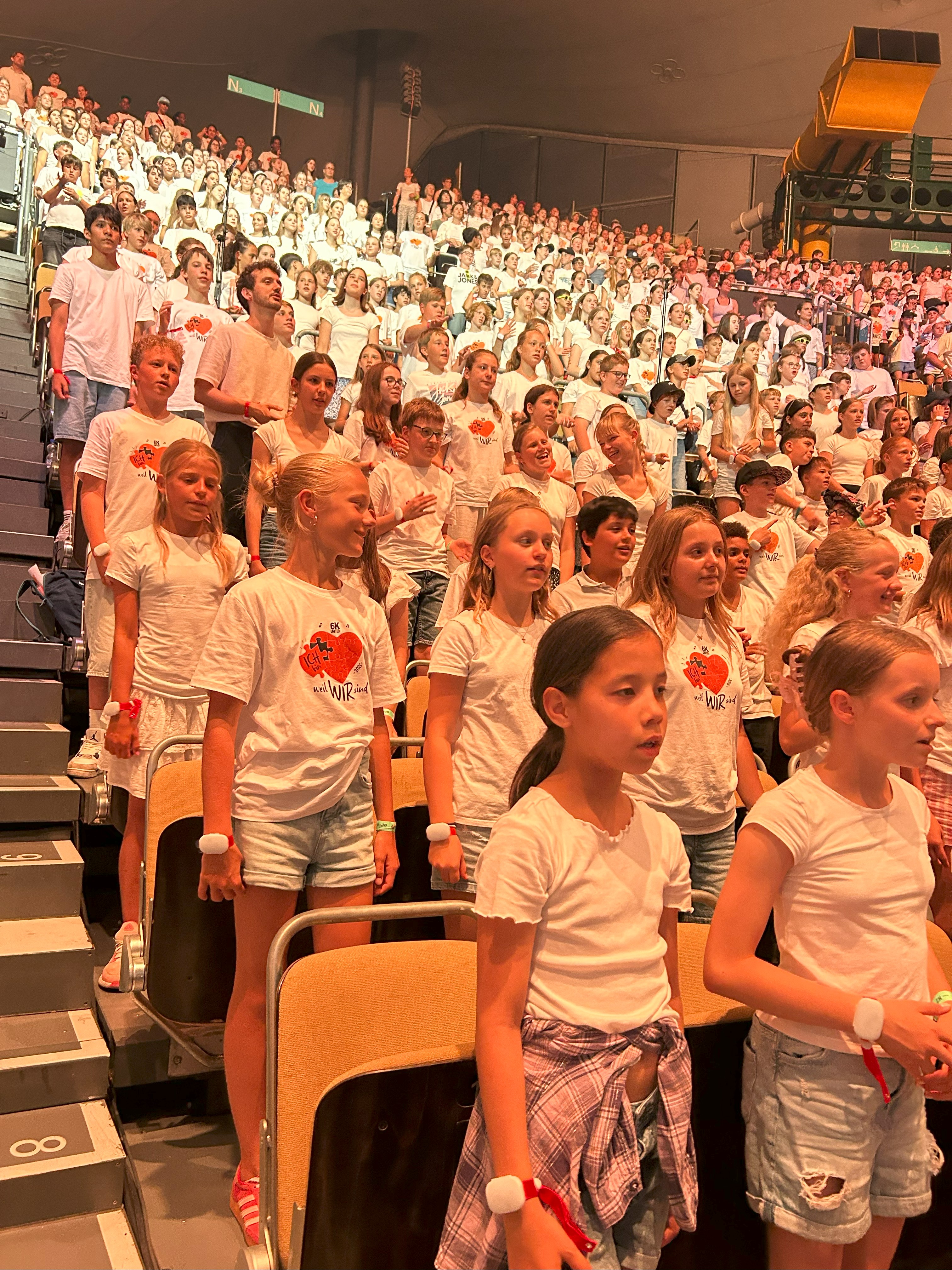 Am Abend war es dann so weit: Das Konzert begann und verwandelte die Olympiahalle in ein Meer aus Musik, Licht und Emotionen. Gänsehaut-Momente reihten sich aneinander – ob bei der mitreißenden Lichter-La Ola-Welle, bei modernen Songs mit bewegender Choreographie oder bei ruhigen Passagen voller Tiefe. Das Publikum war begeistert, die Stimmung elektrisierend, und der Zusammenhalt unter den jungen Sängerinnen und Sängern spürbar wie nie zuvor. Auch das Publikum war begeistert und sang, tanzte und jubelte mit den Kindern.