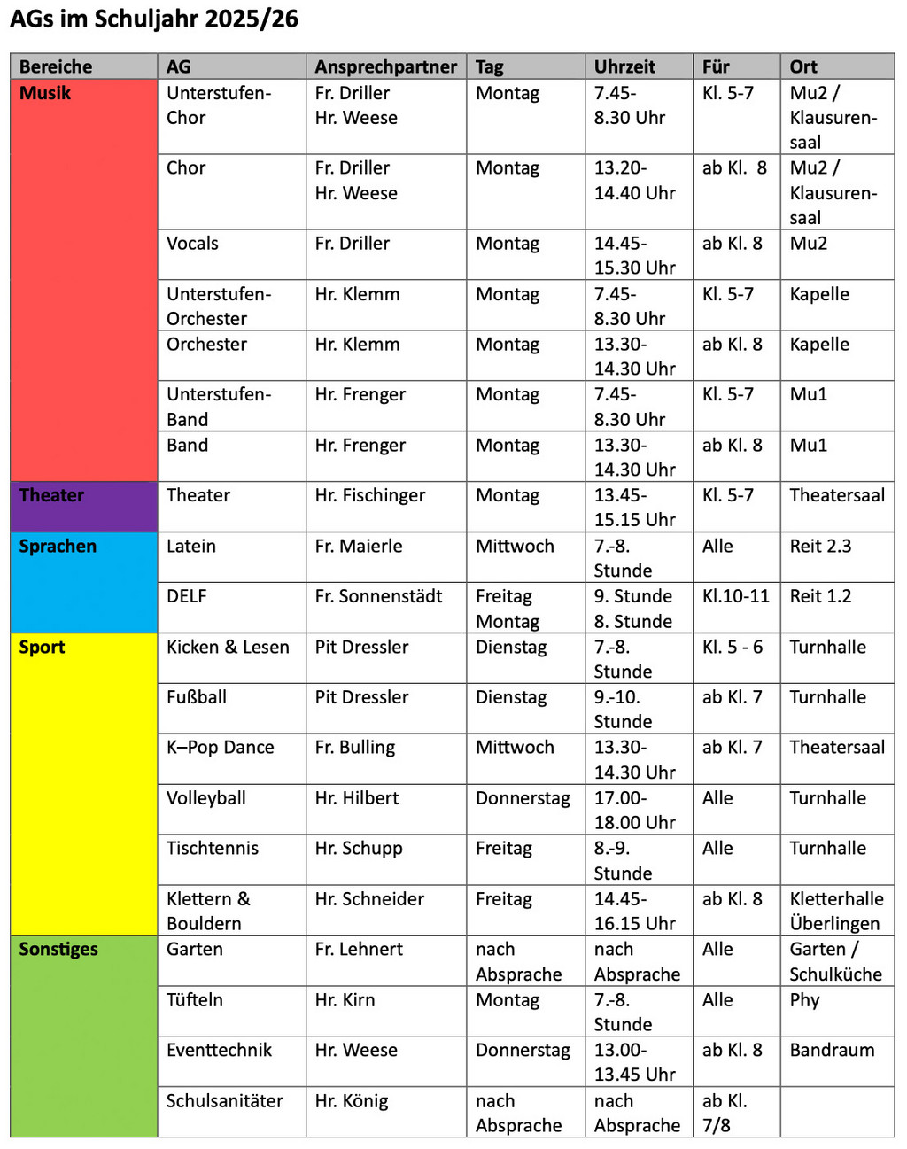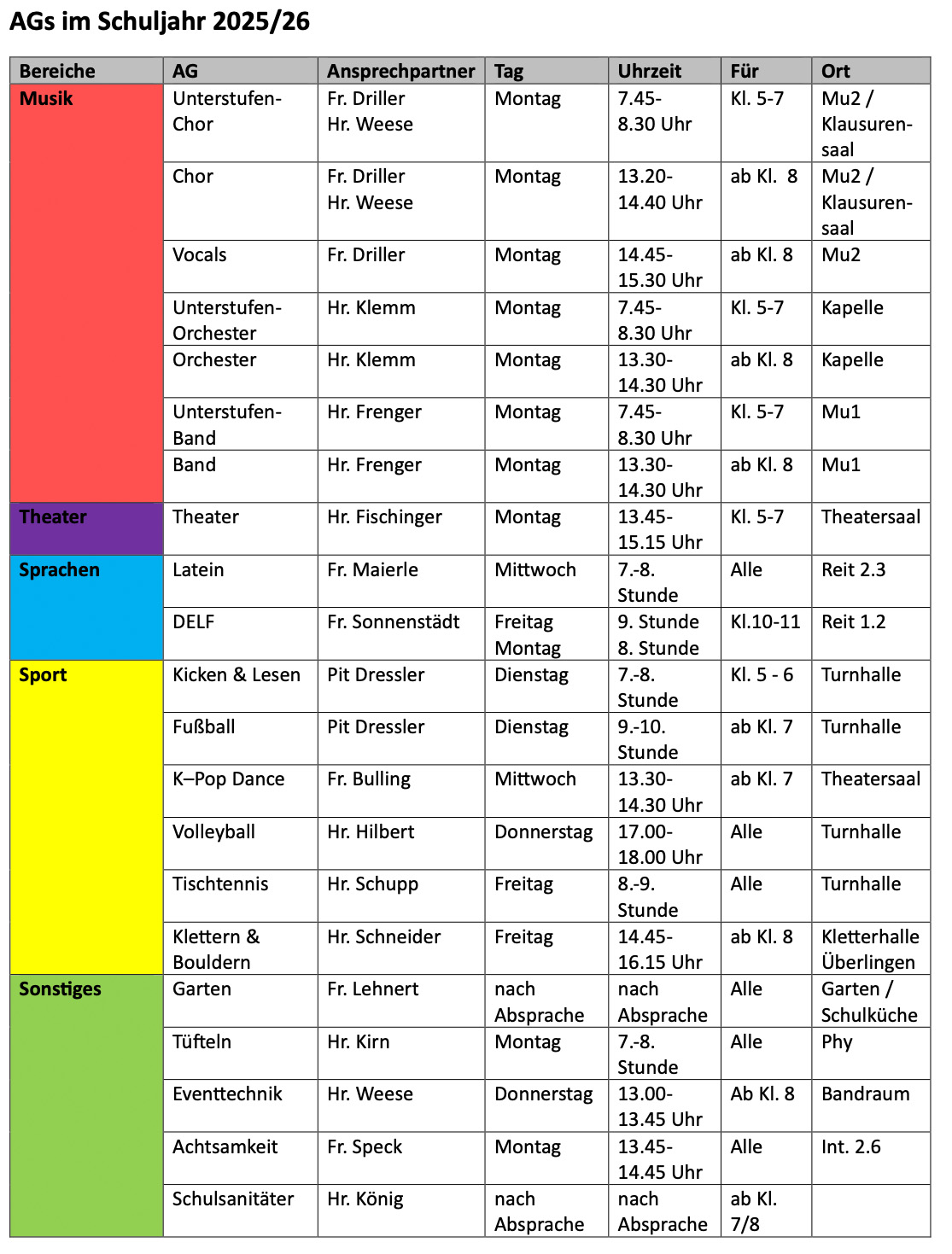 Informationen zu den AGs 2025/26