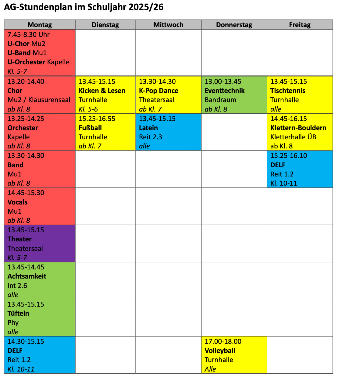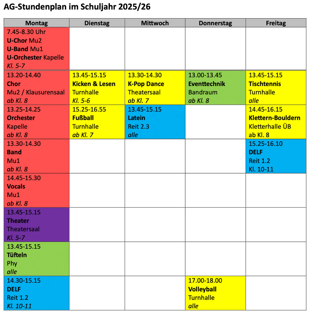Im Schuljahr 2025 / 2026 findet diese, zu folgenden Zeiten im Raum Reit 2.4 statt: